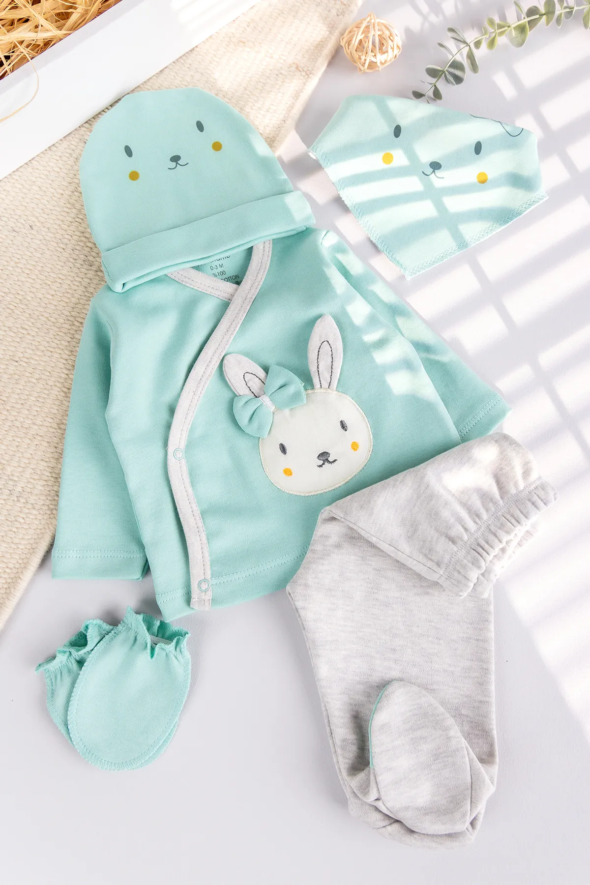 Tavşan Figürlü 5 Parça Kız Bebek Hastane Çıkışı Bebek Takımı