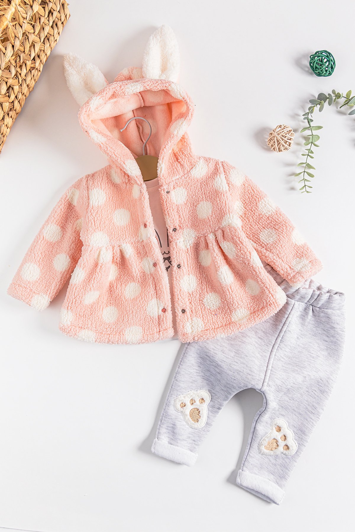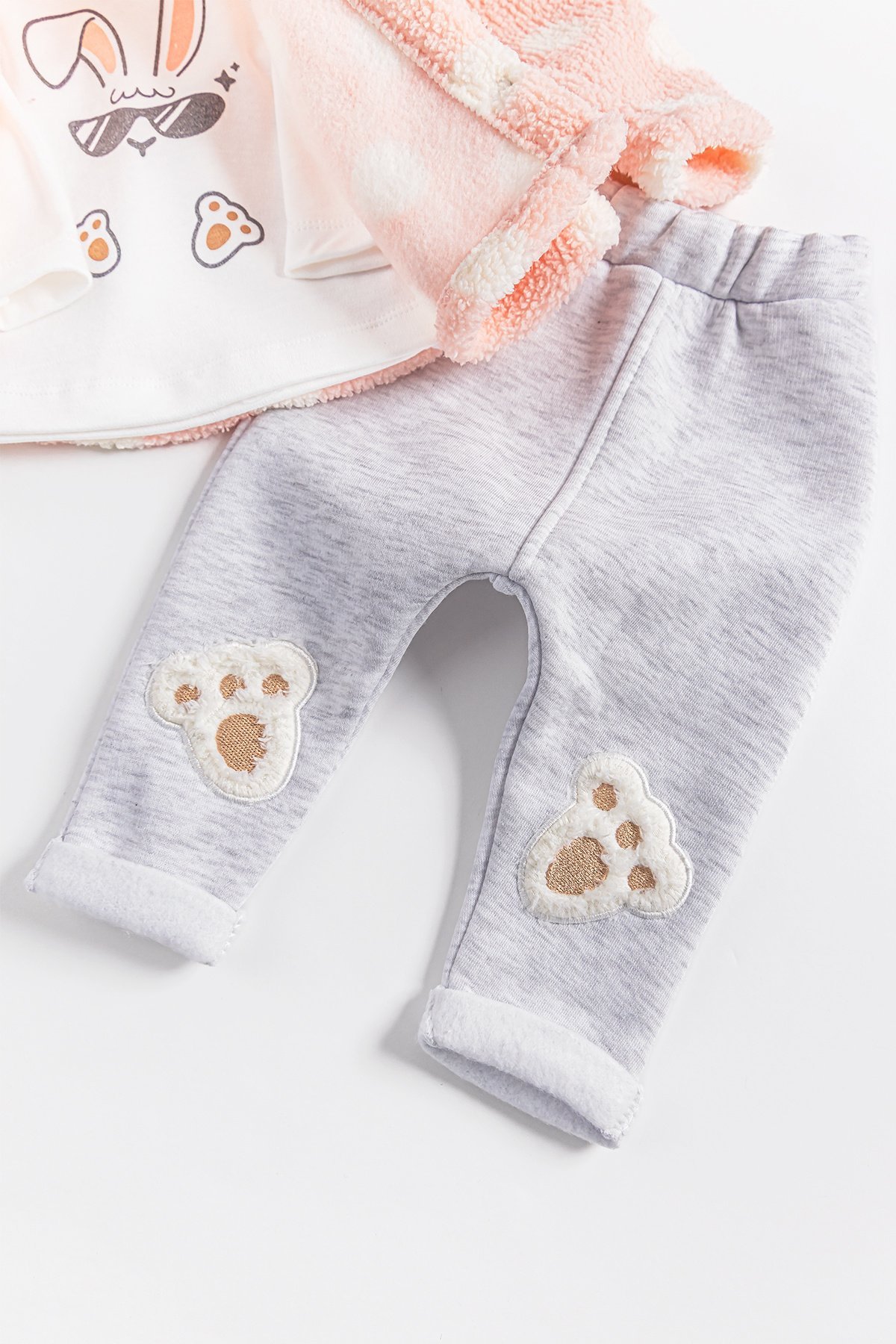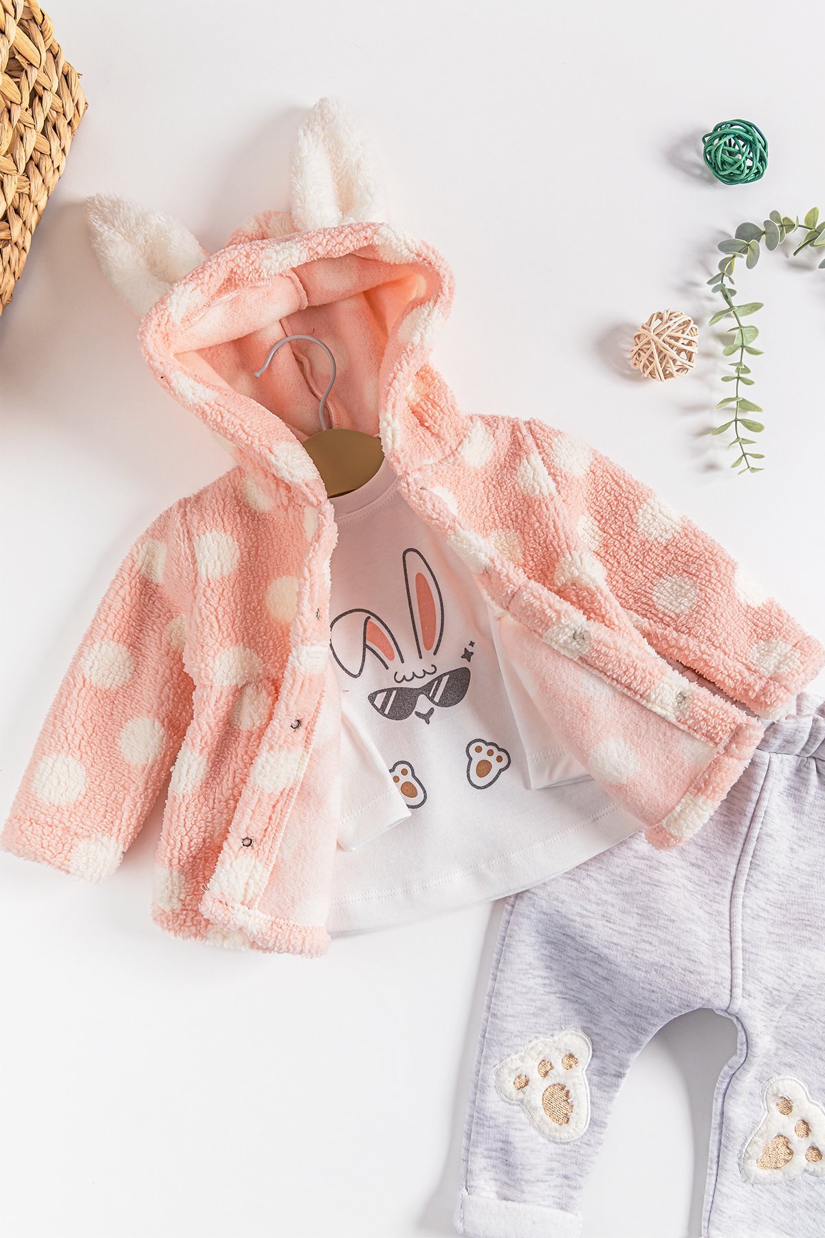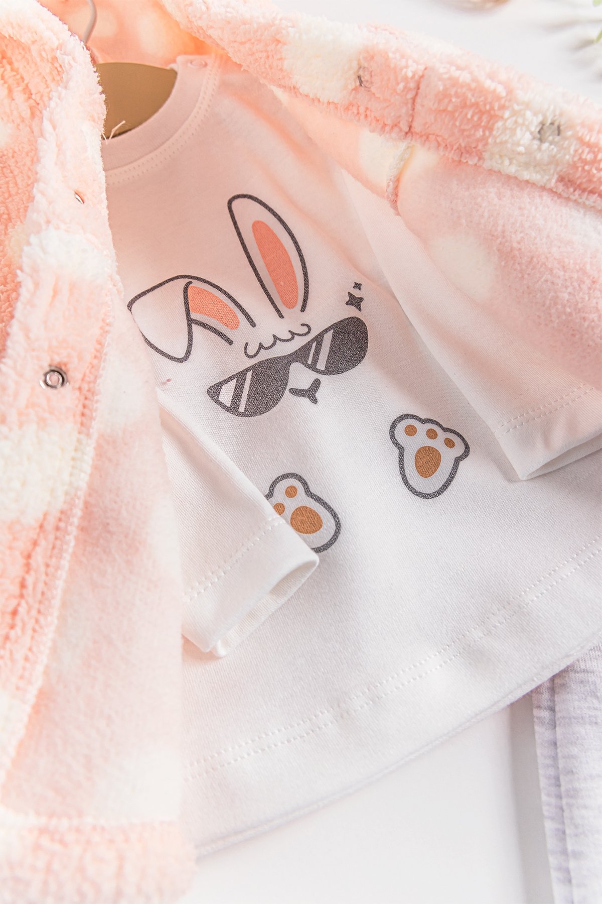 Babymod Rabbit Figured Cardigan 3-Piece Baby Girl Set