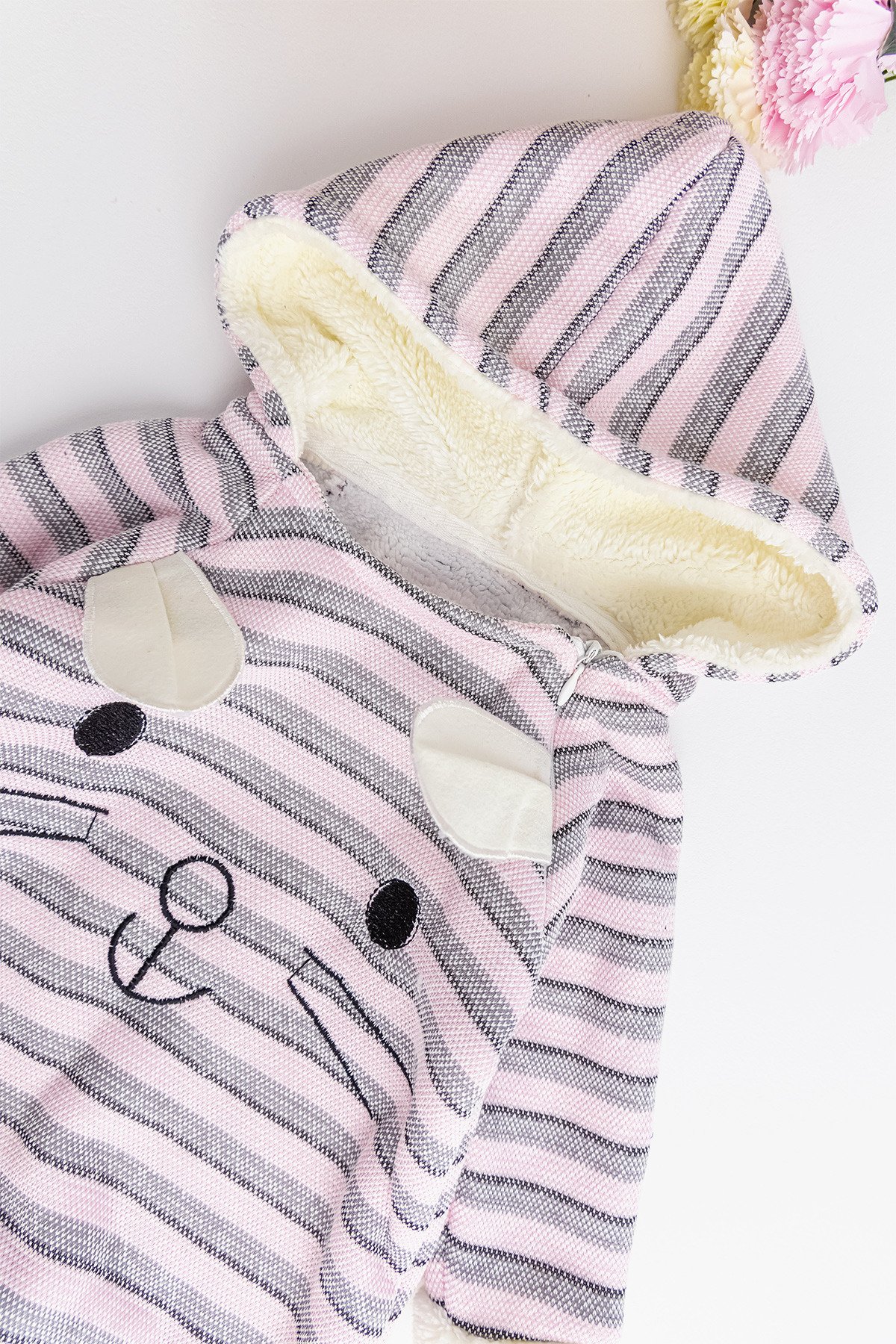 - Bebek tulumun ön kısmında tavşan figürü işlemesi mevcuttur.