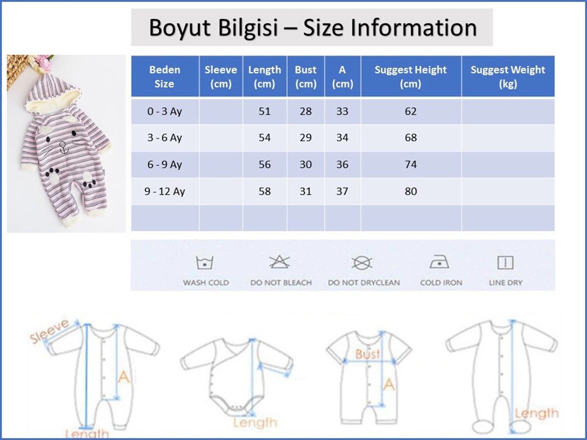 - Görselde kullanılan ürün 0-3 Ay bedendir.