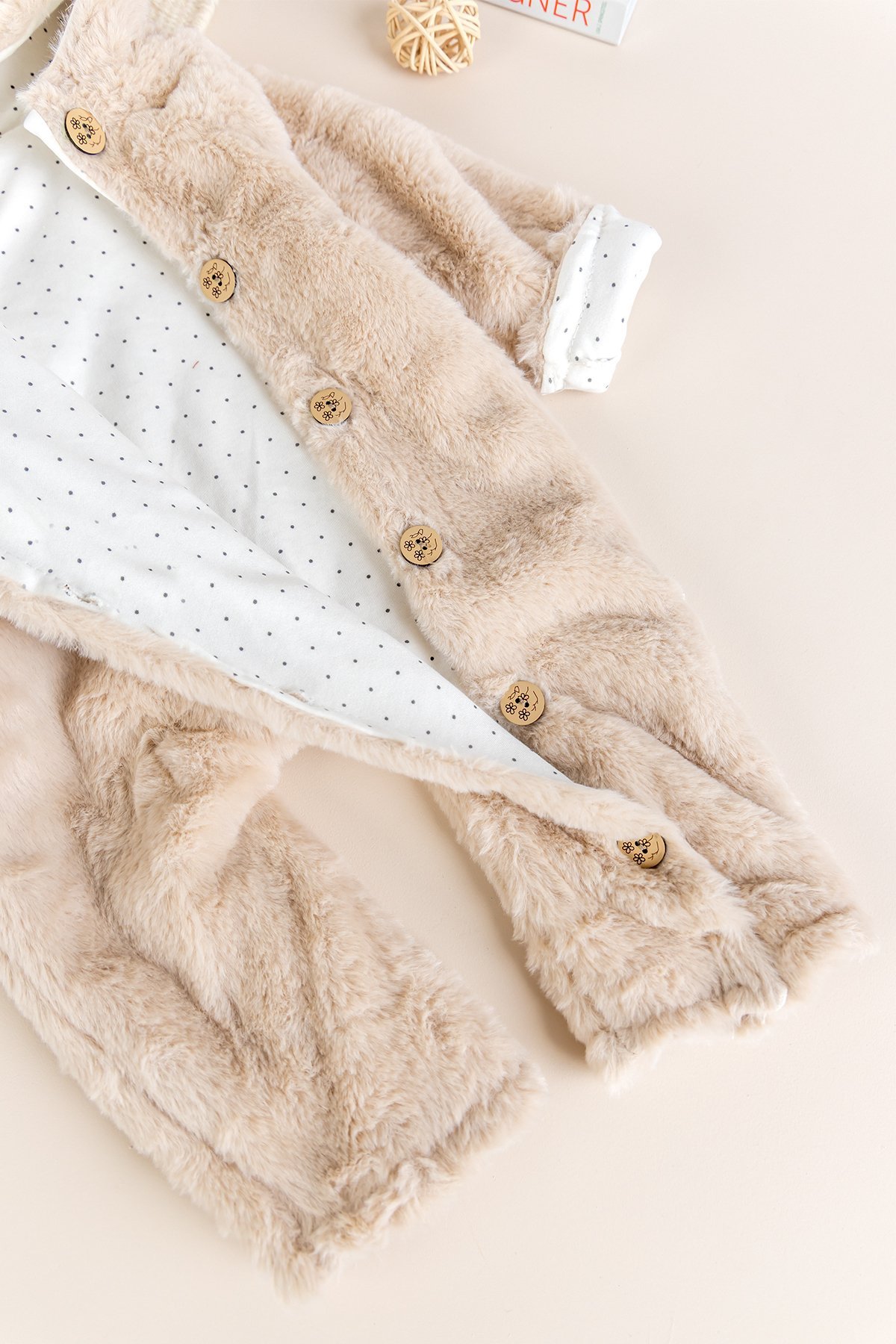 - Bebek tulumun dış yüzeyi peluş kumaş içi penye astarlıdır