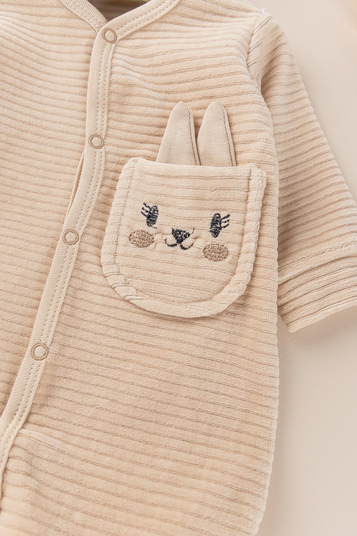 - Bebek tulumun ön kısmında tavşan figürlü mini cebi vardır.