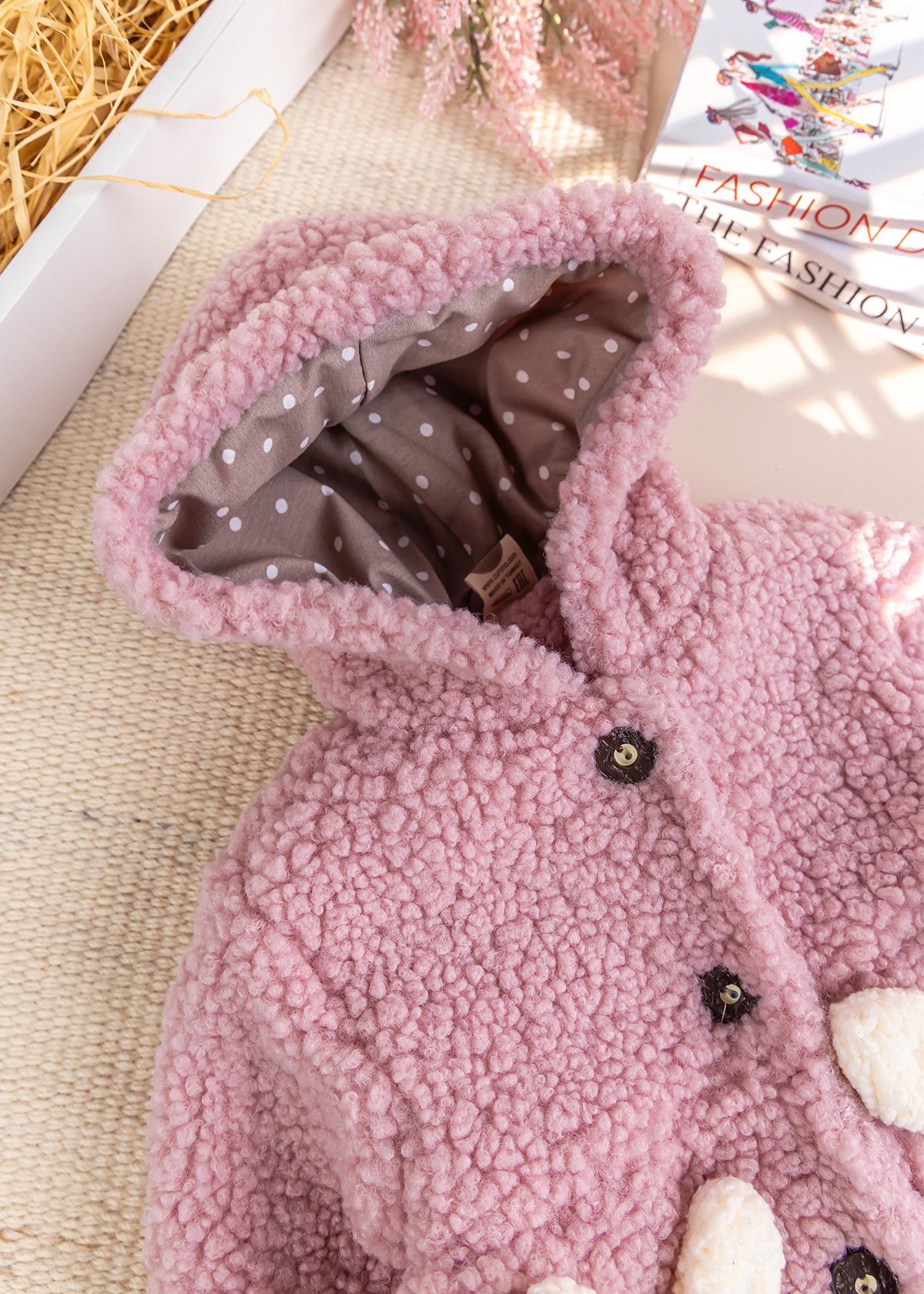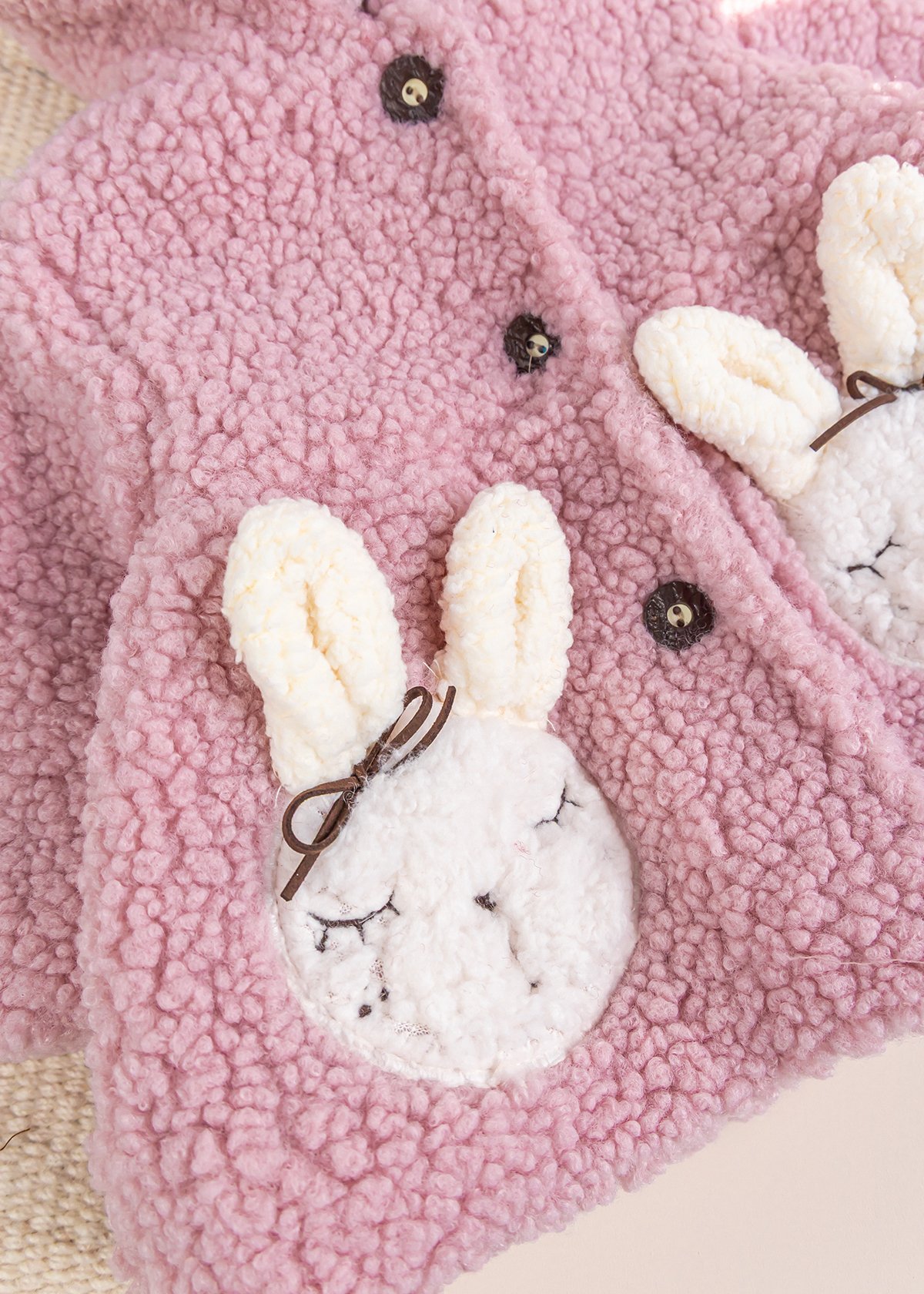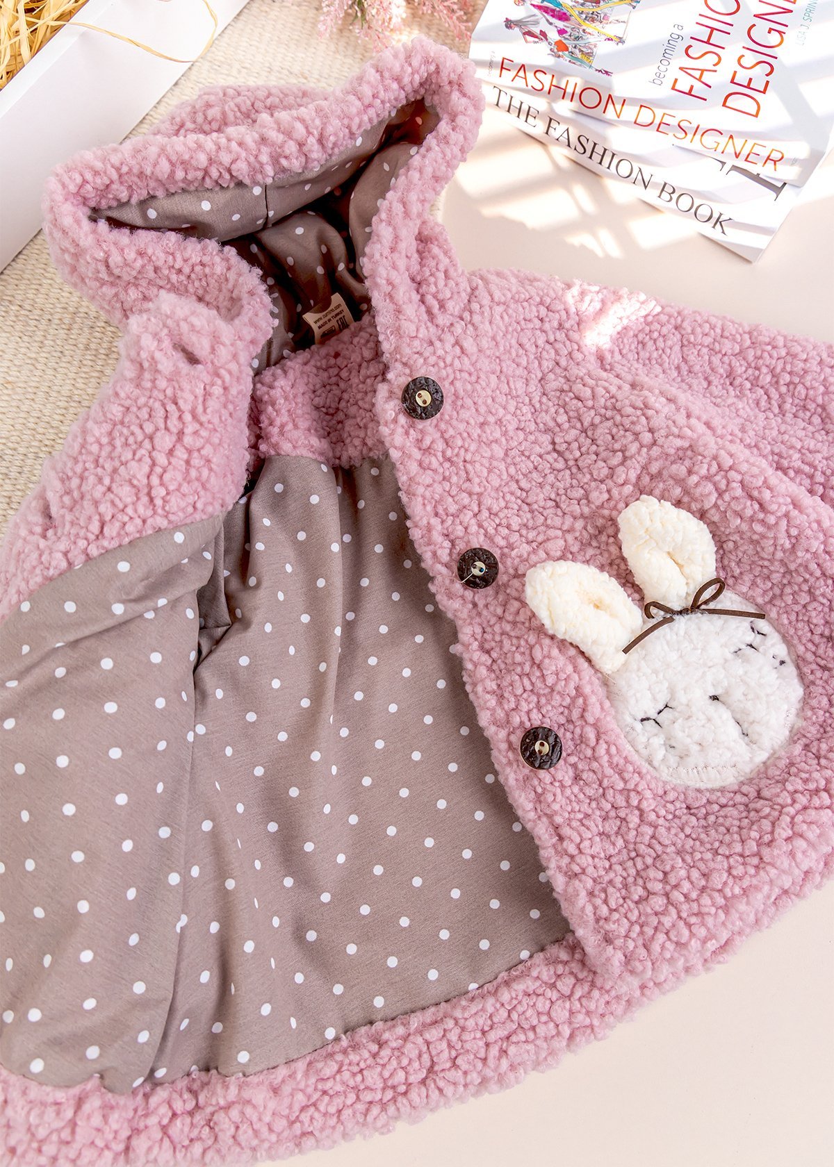 Tavşan Fiğürlü Welsoft Kışlık Kız Bebek/Çocuk Mont Pembe