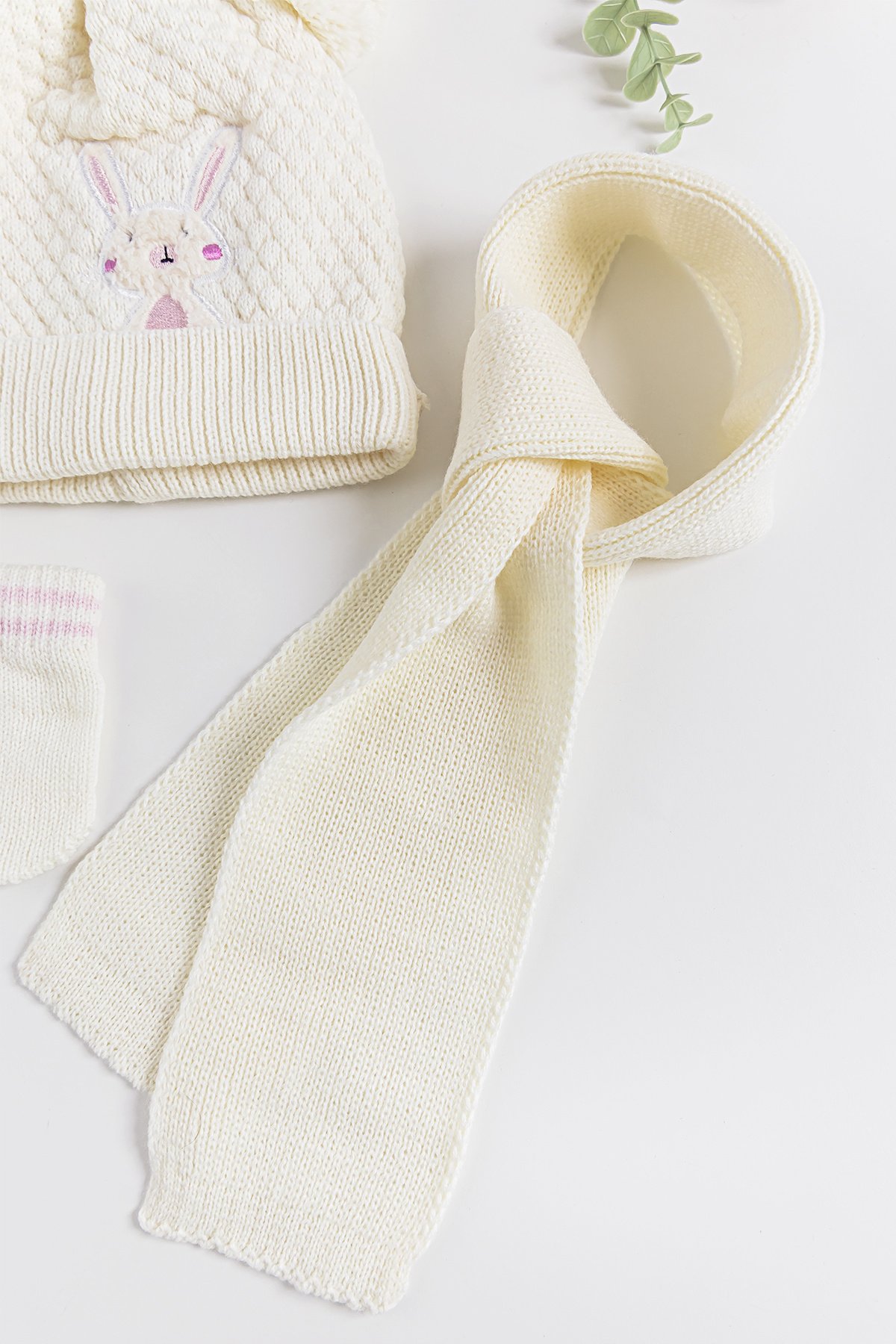 Tavşan İşlemeli 0-18 Ay Kız Bebek Atkı Bere Eldiven Takımı