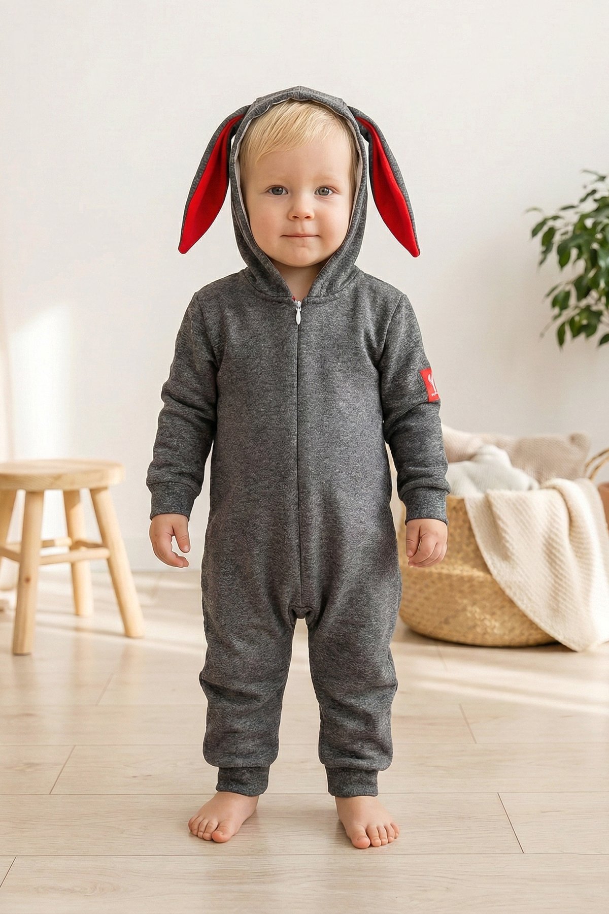 - Tulumun kapüşonu tavşan kulaklıdır.