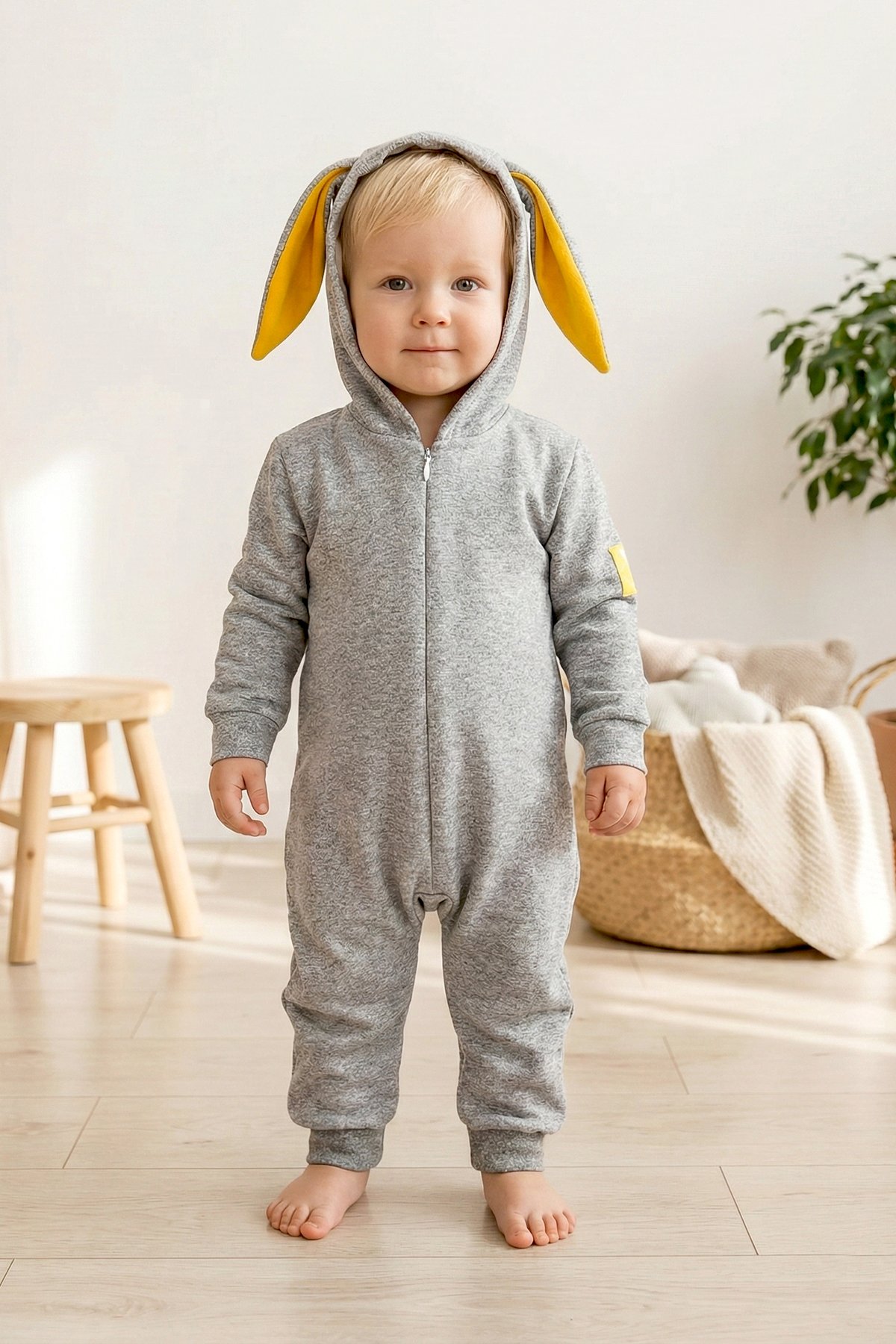 Babymod Baby Girl/Boy Jumpsuit with Rabbit Ears and Front Zipper