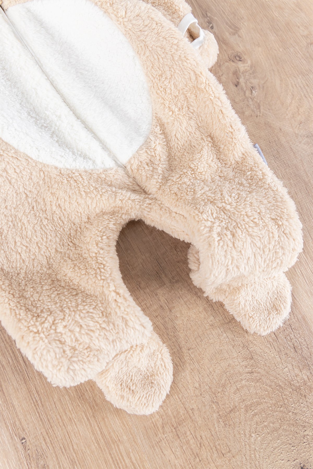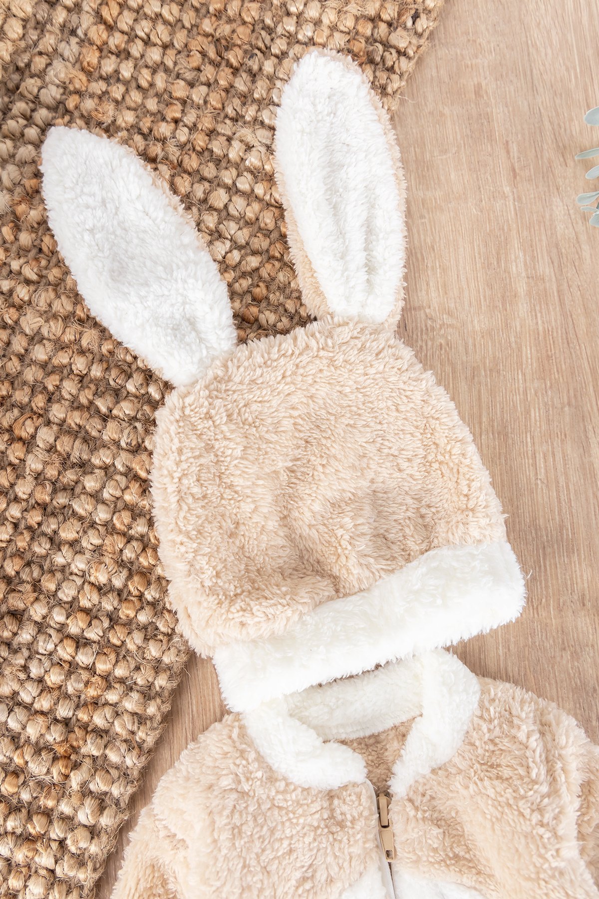 - The hat of the jumpsuit has rabbit ear detail.