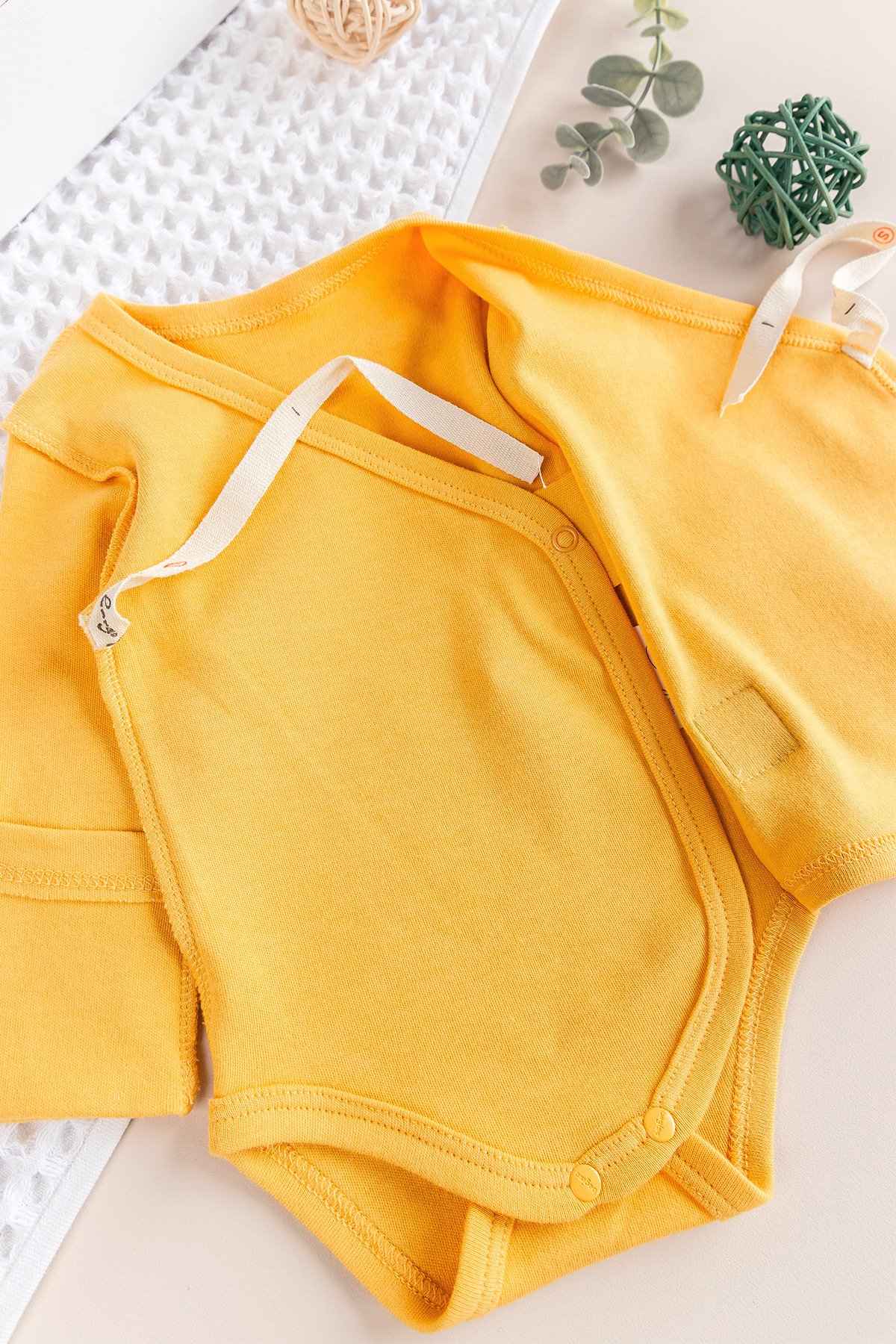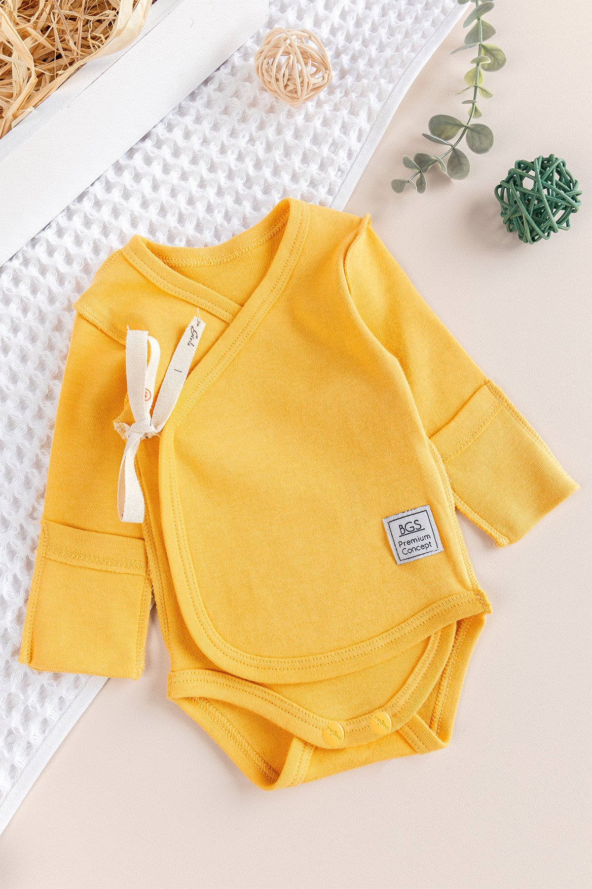Ters Dikişli Yeni Doğan Kruvaze Çıt Çıtlı Body Zıbın SARI - Yeni Doğan