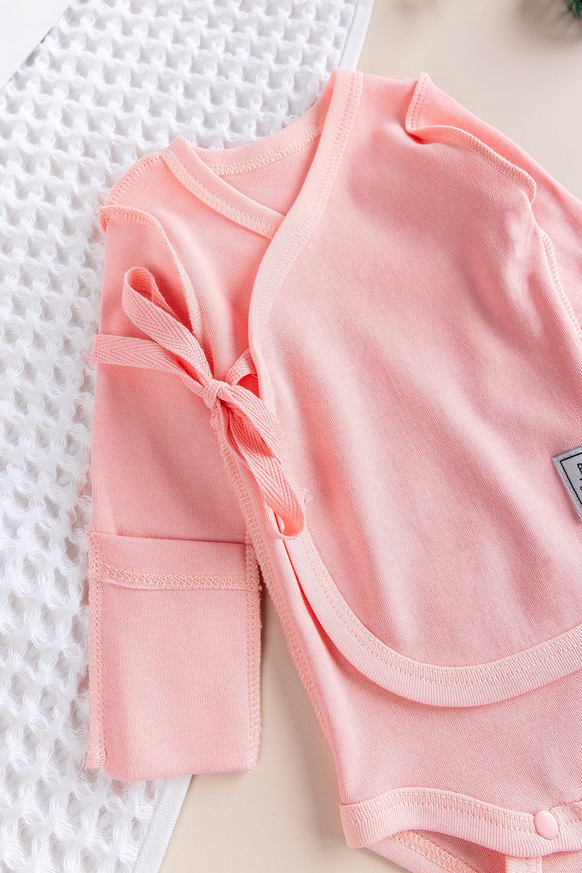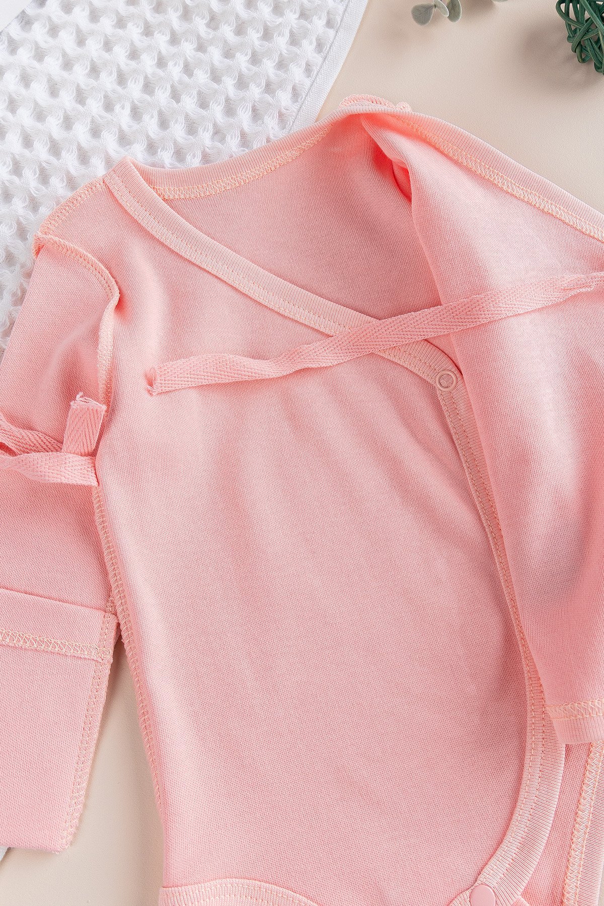 - The sleeves of the bodysuit are produced with reverse gloves for the comfort of the newborn baby.
