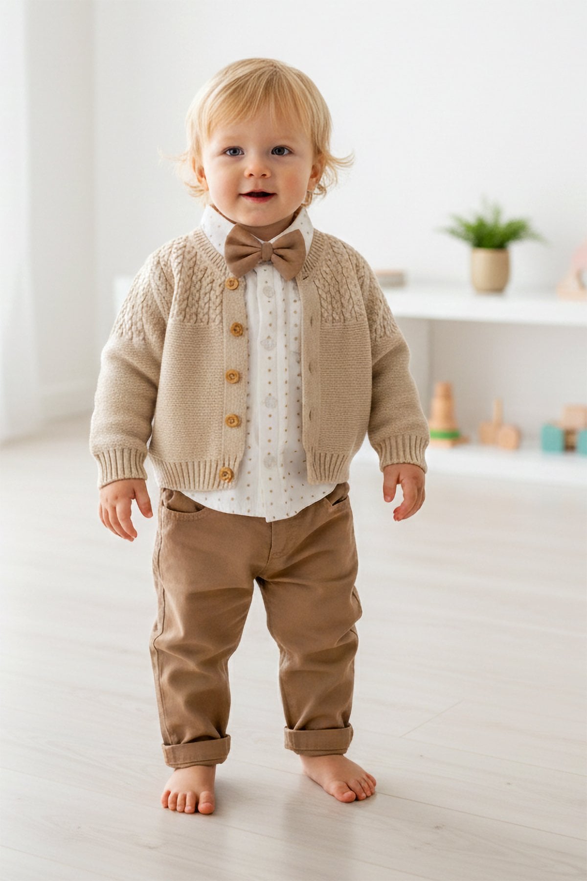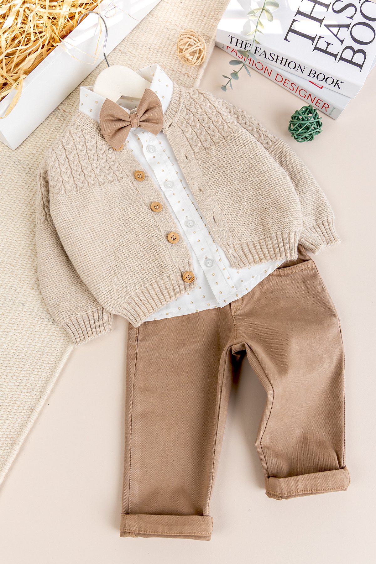 - Küçük beyefendiler için özel olarak tasarlanmış bu 4 parçalı şık takım set, hem rahatlık hem de zarif bir görünüm sunar. Günlük kullanımda ya da özel davetlerde miniklerin tarzını mükemmel şekilde yansıtır.
