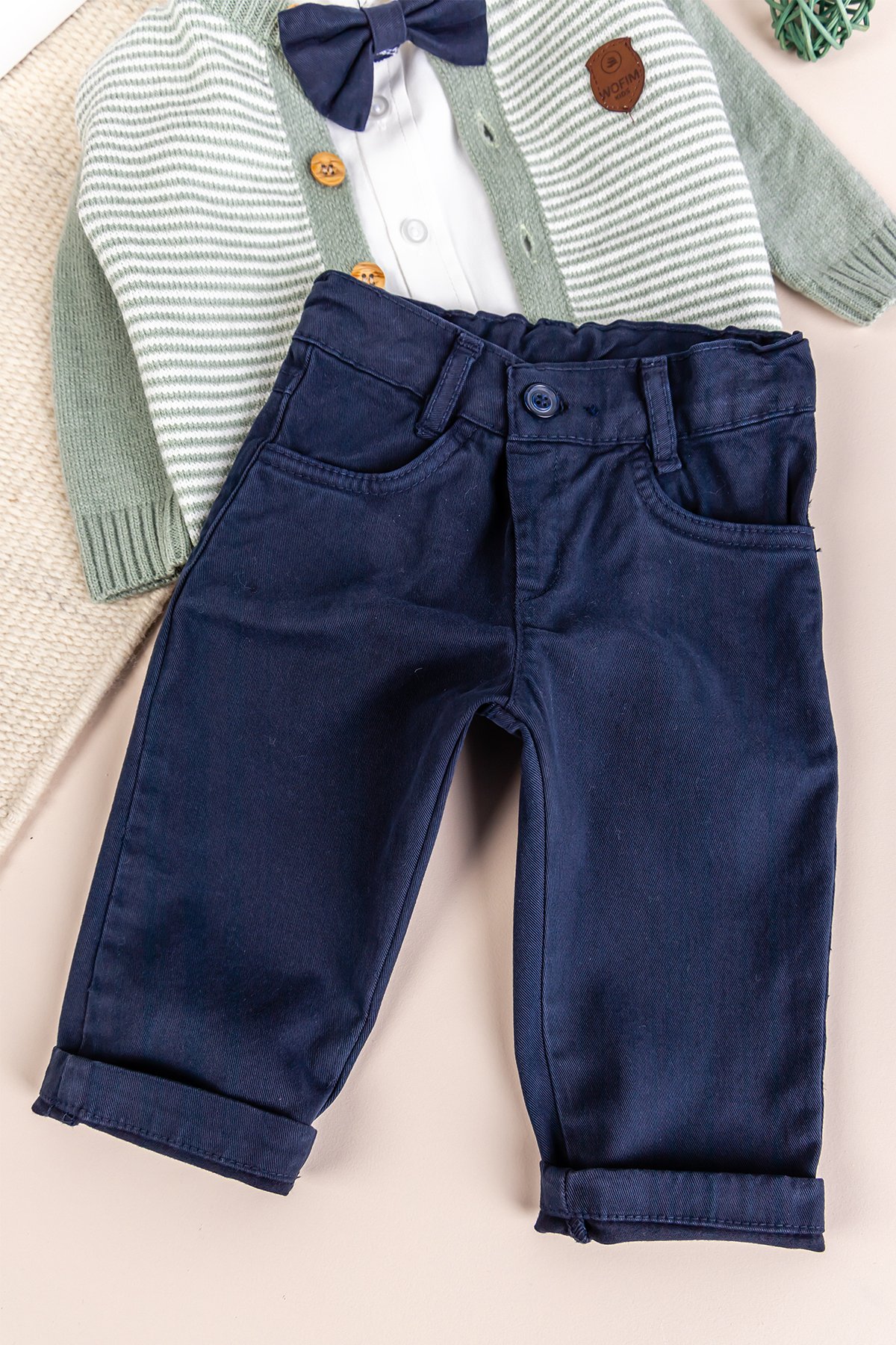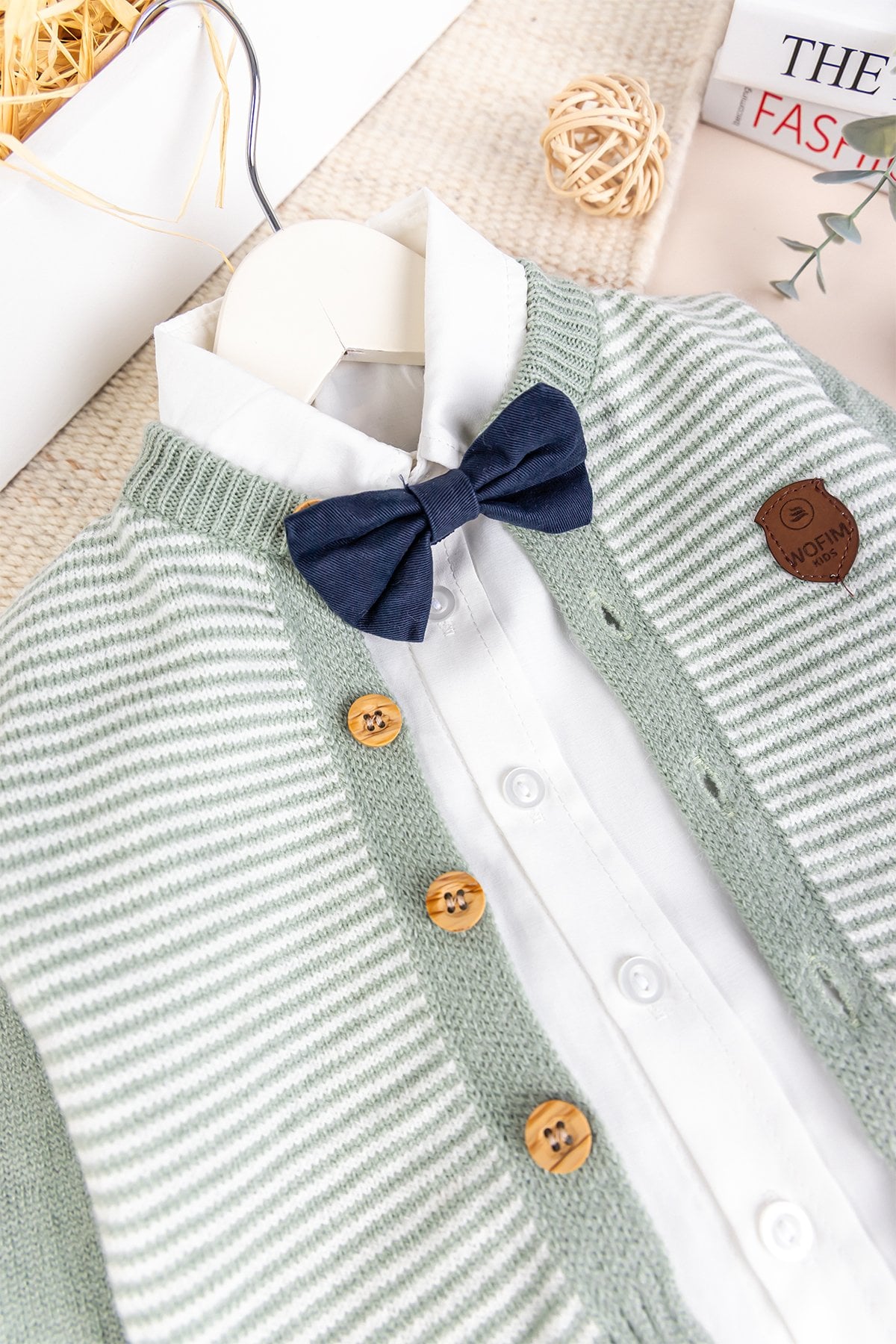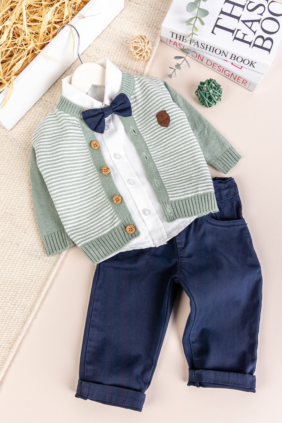 Triko Hırkalı Papyonlu 4 Parça Şık Erkek Bebek-Çocuk Takım Set