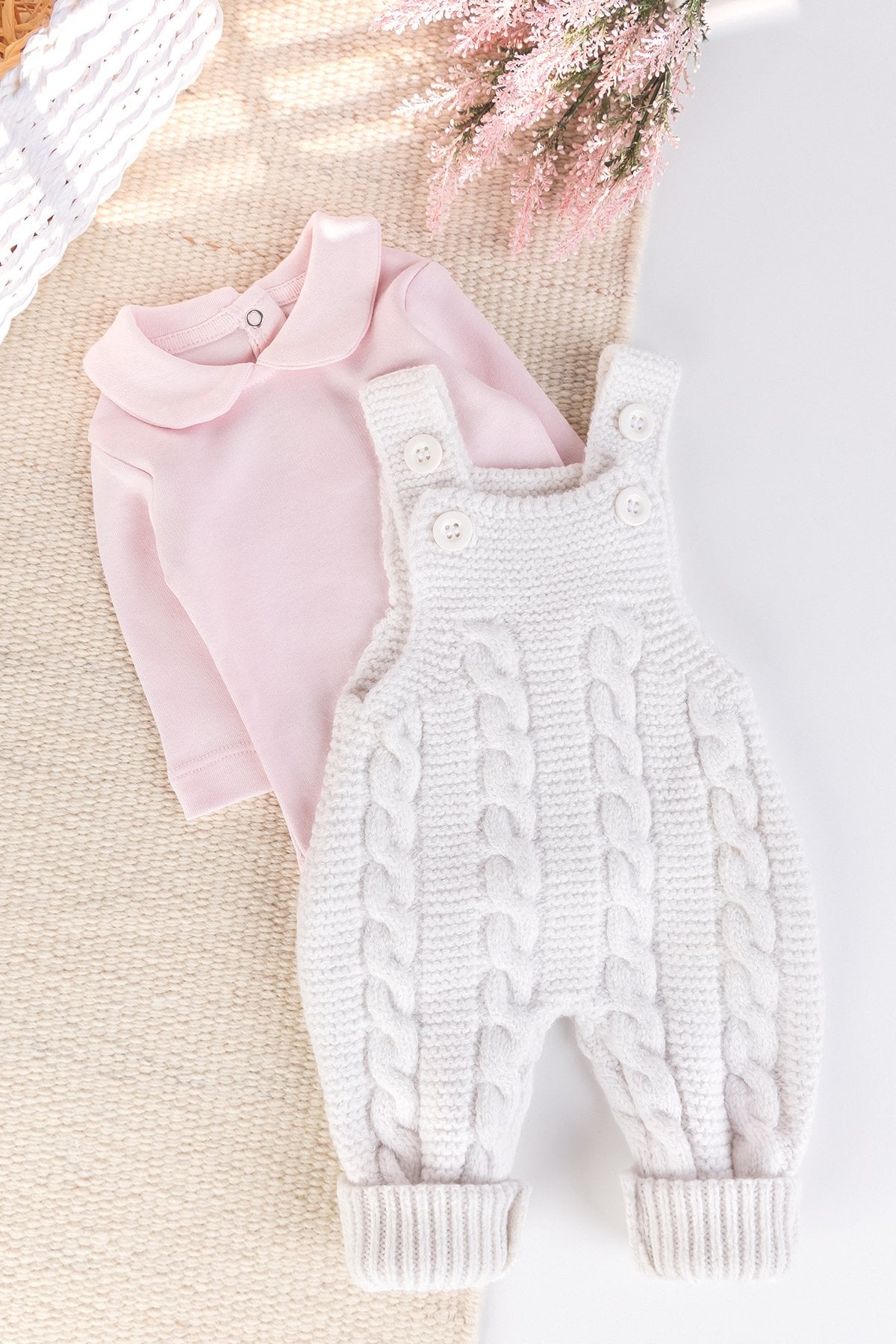 Triko Kışlık 2'li Kız Bebek Salopet Tulum Set