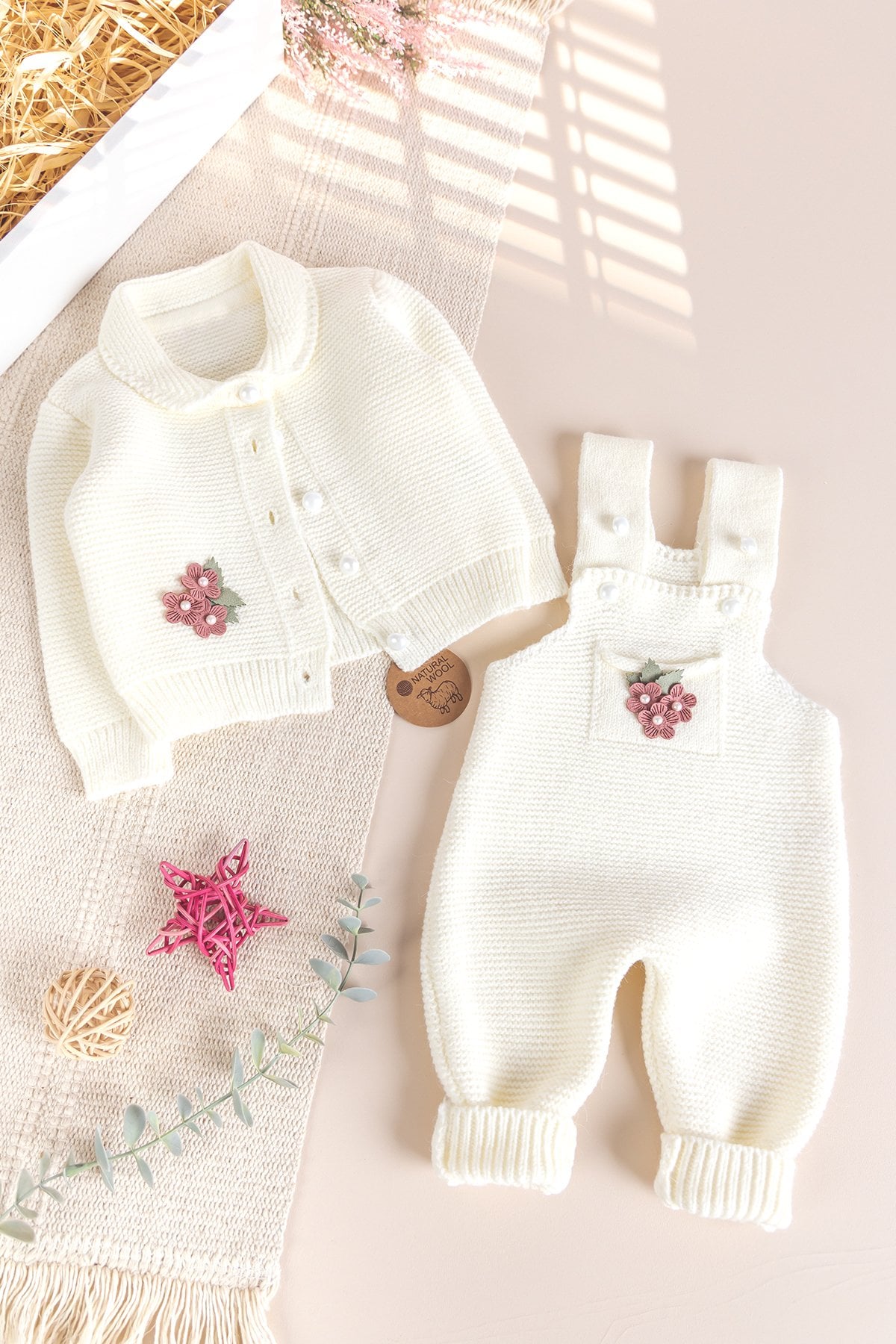 - Kız bebek salopet triko takım iki parcadan oluşur