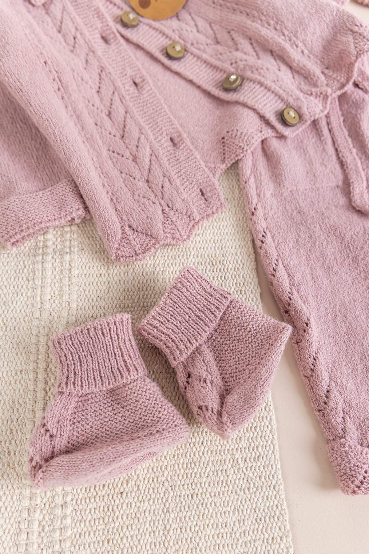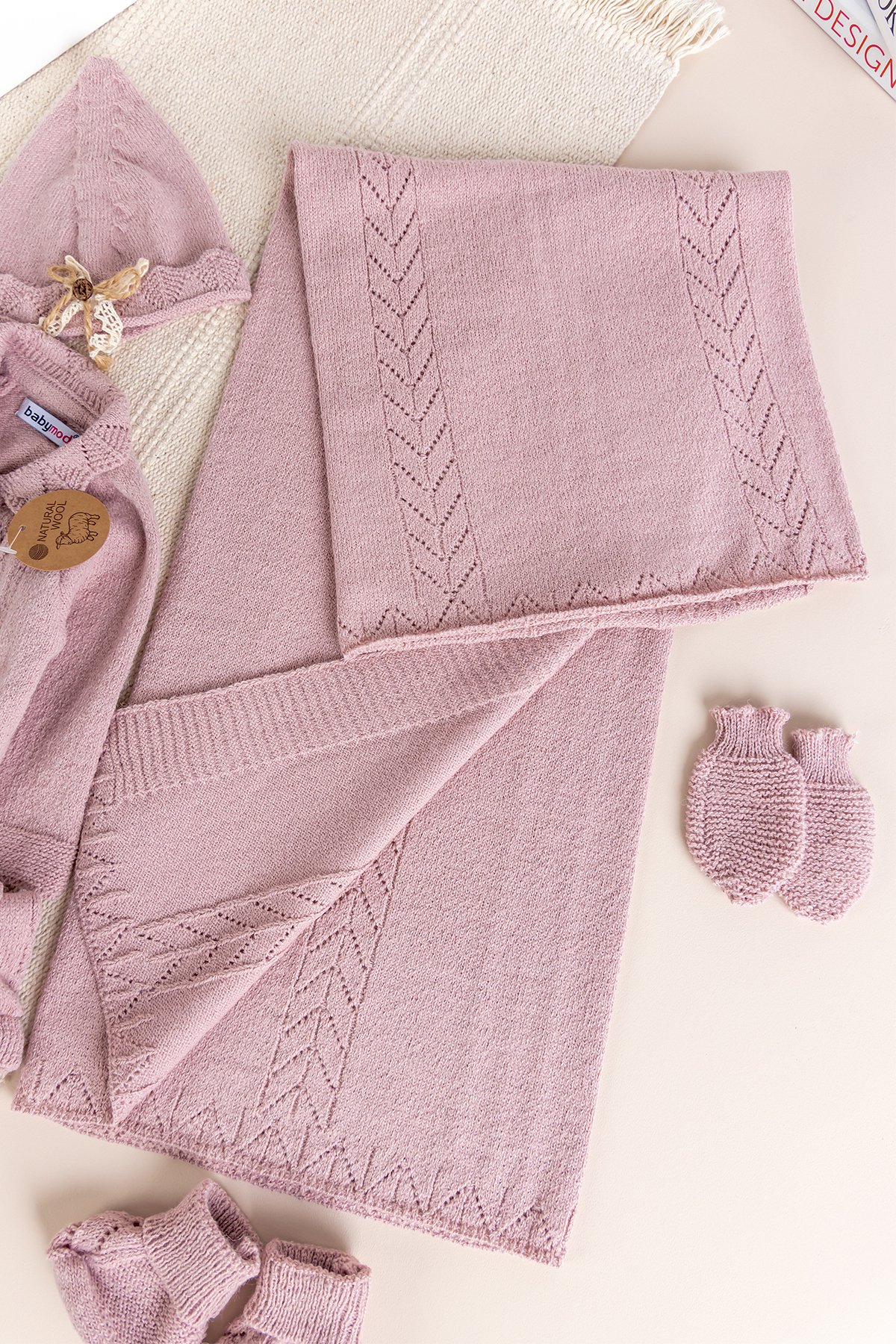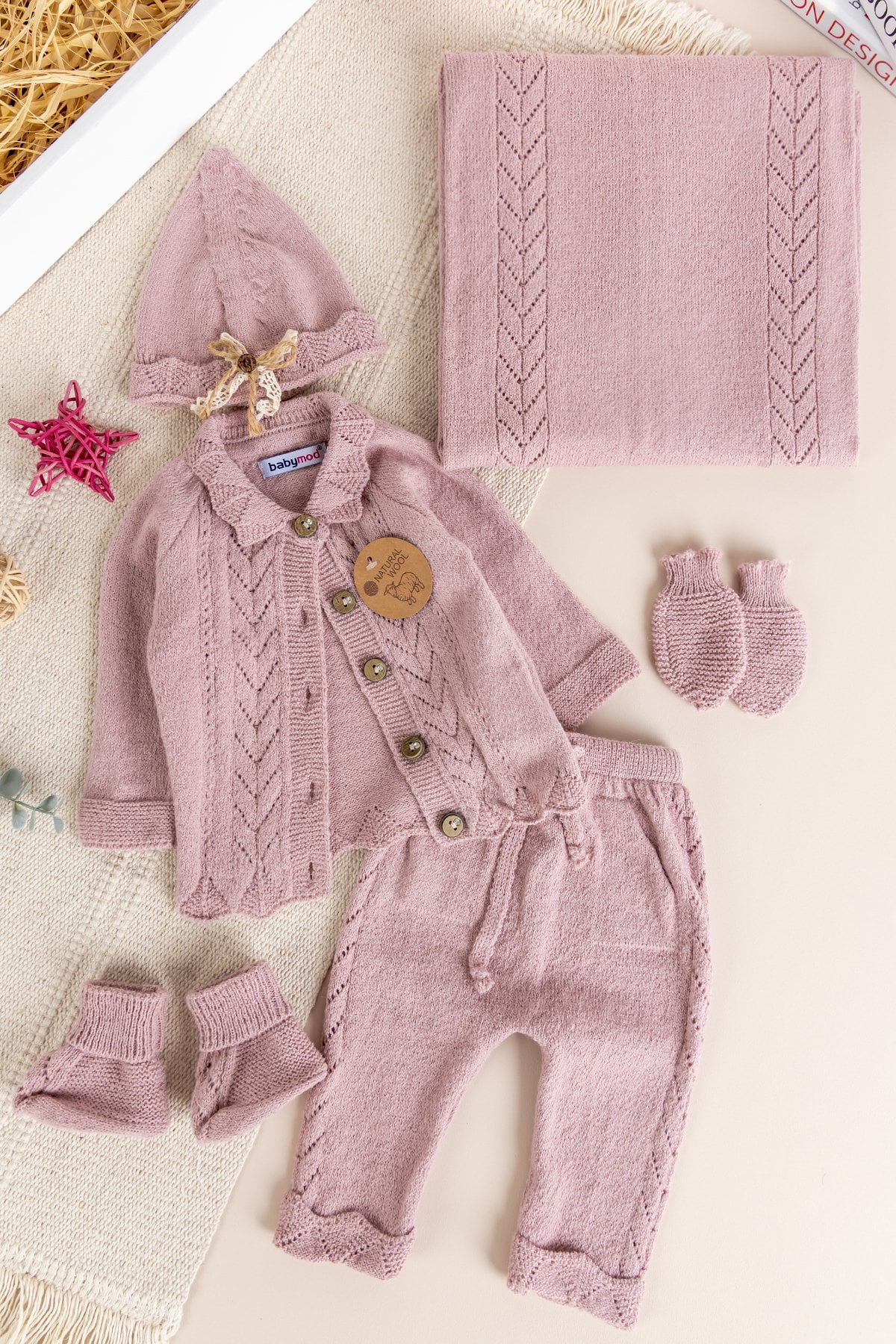 Triko Kız Bebek Hastane Çıkışı Hediyelik Bebek Seti Gül kurusu - 0-3 AY