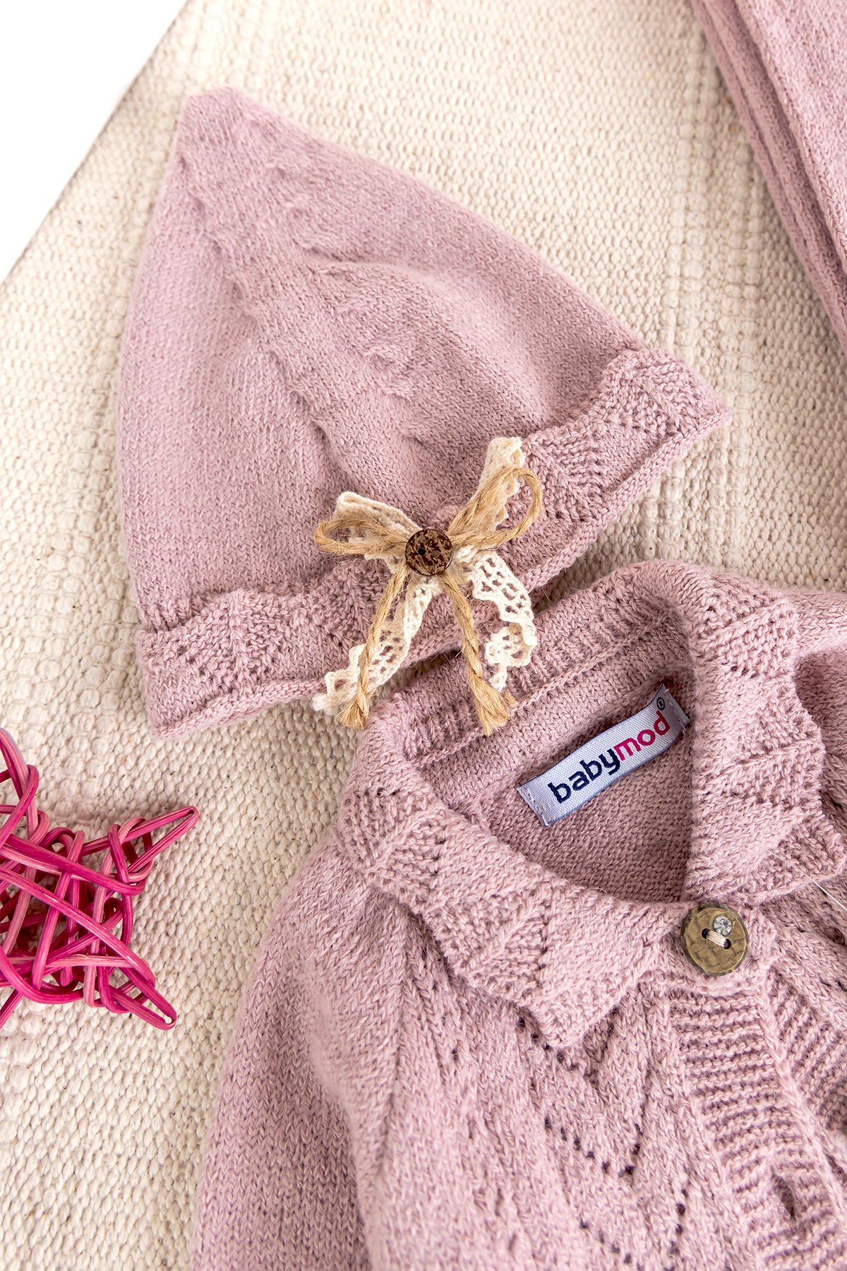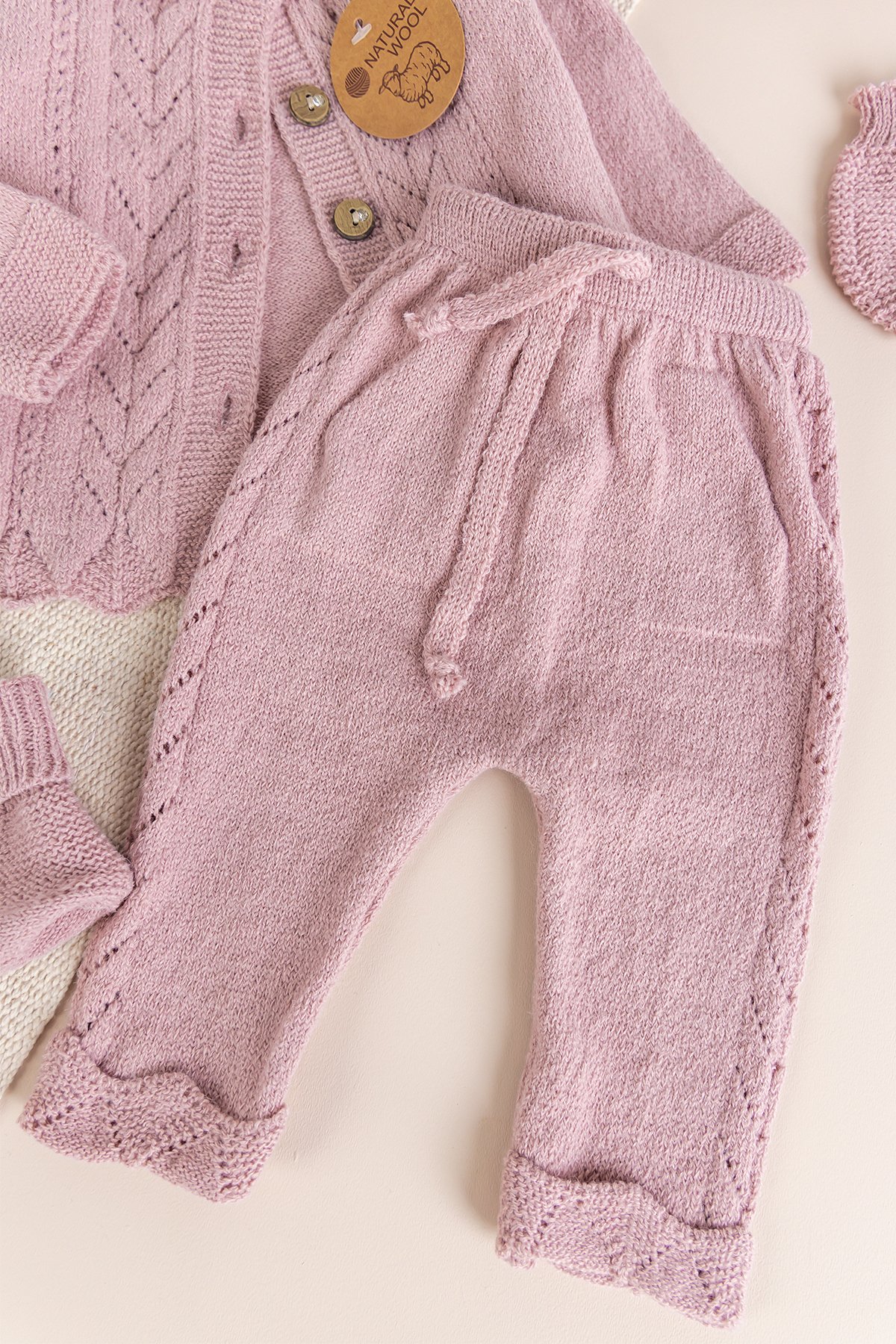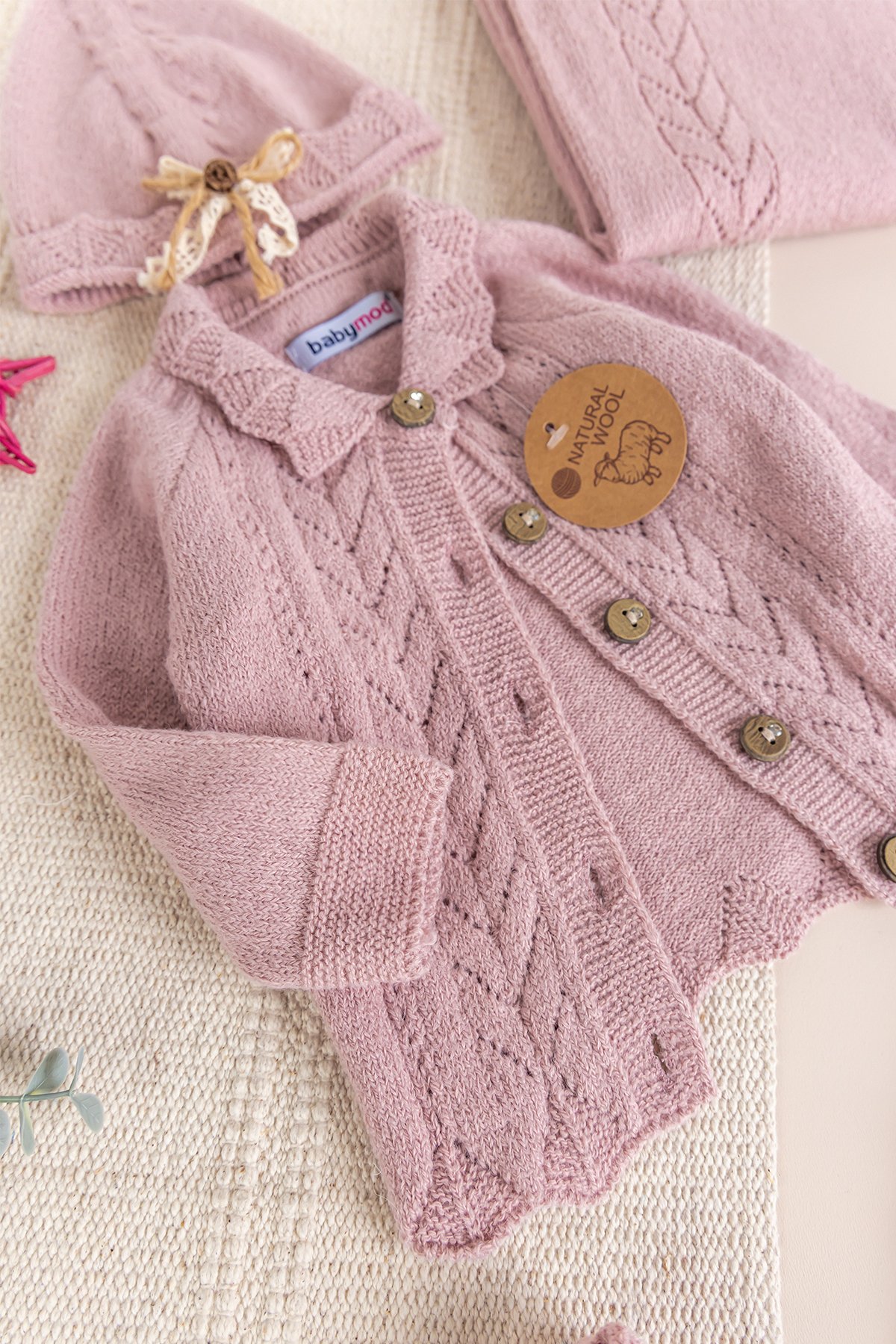 - Kız bebek triko set yumuşak dokulu iplikten üretilmiştir.