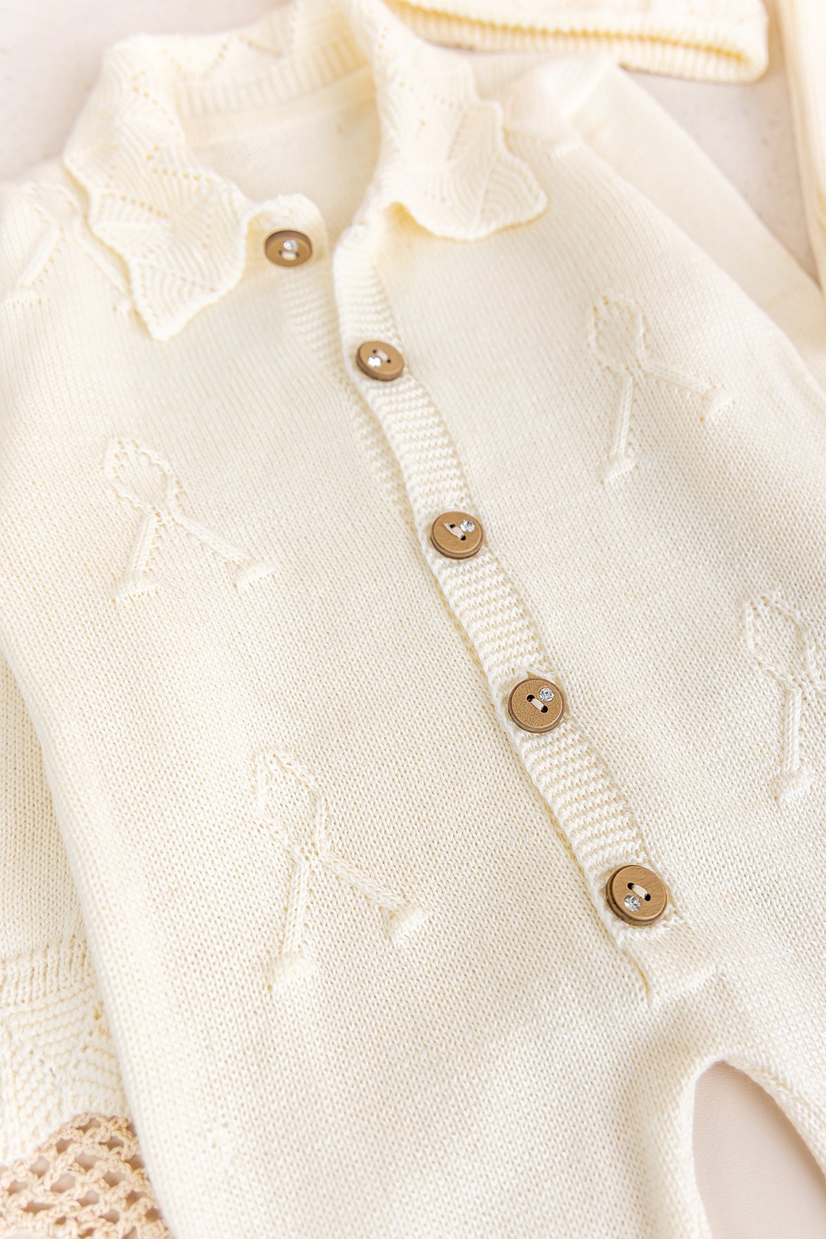 - Bebek hırka önden düğmeli modeldir