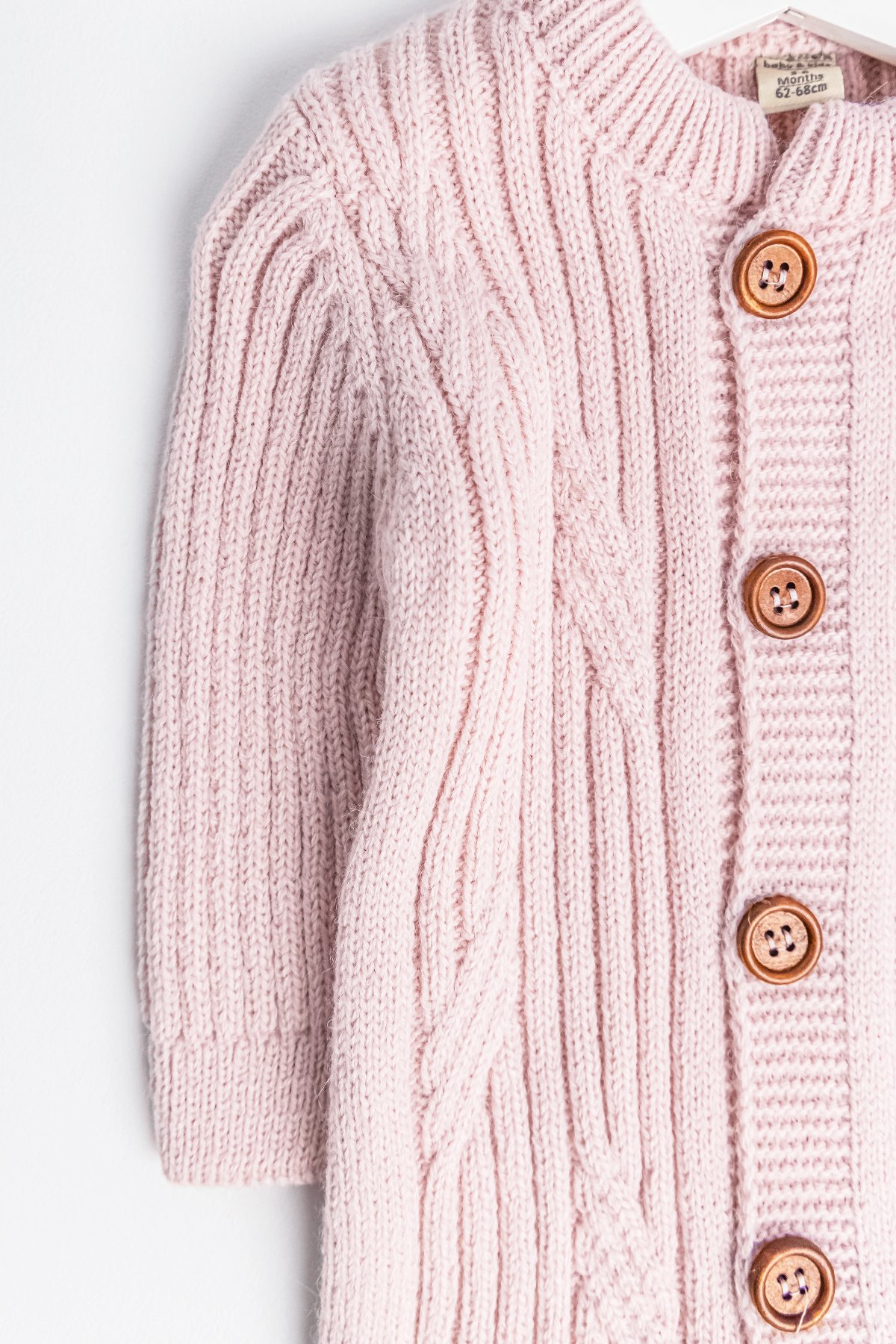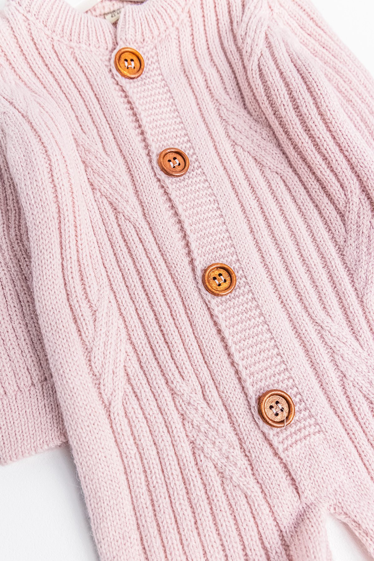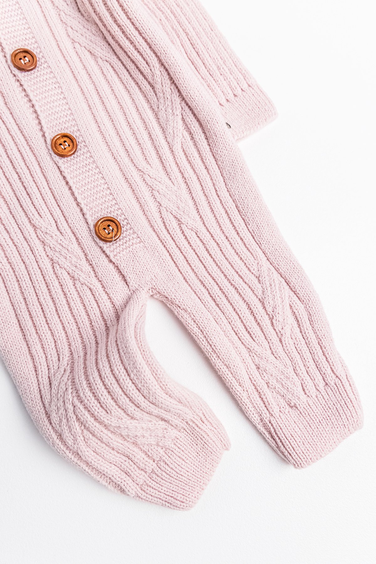 - The baby romper has a soft textured knitwear structure.