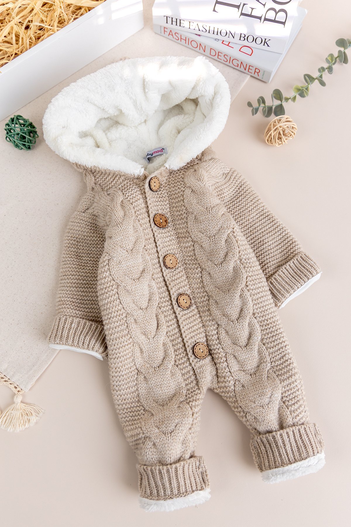 Triko Örme Welsoft Astarlı Kapüşonlu Kışlık Bebek Tulum
