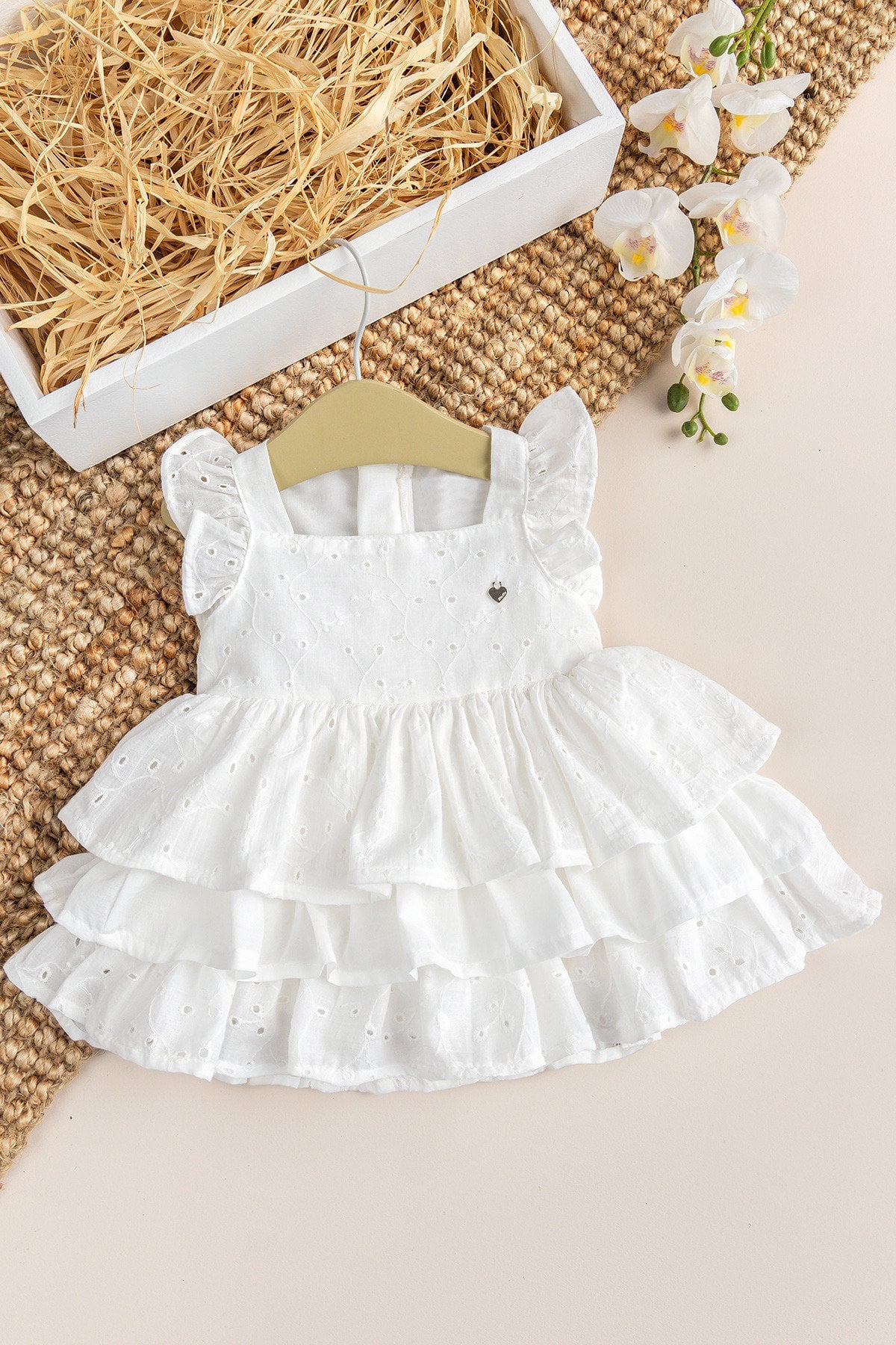 - Bebek elbisenin eteği 3 katlı modeldir