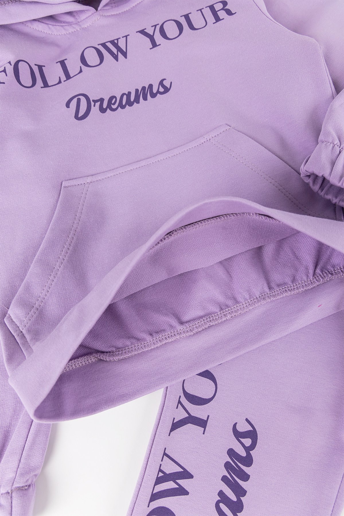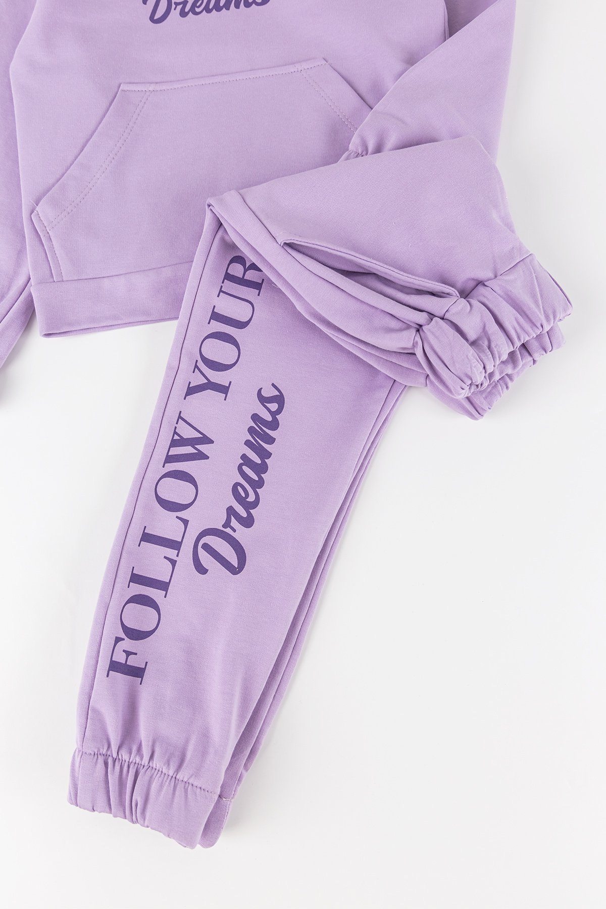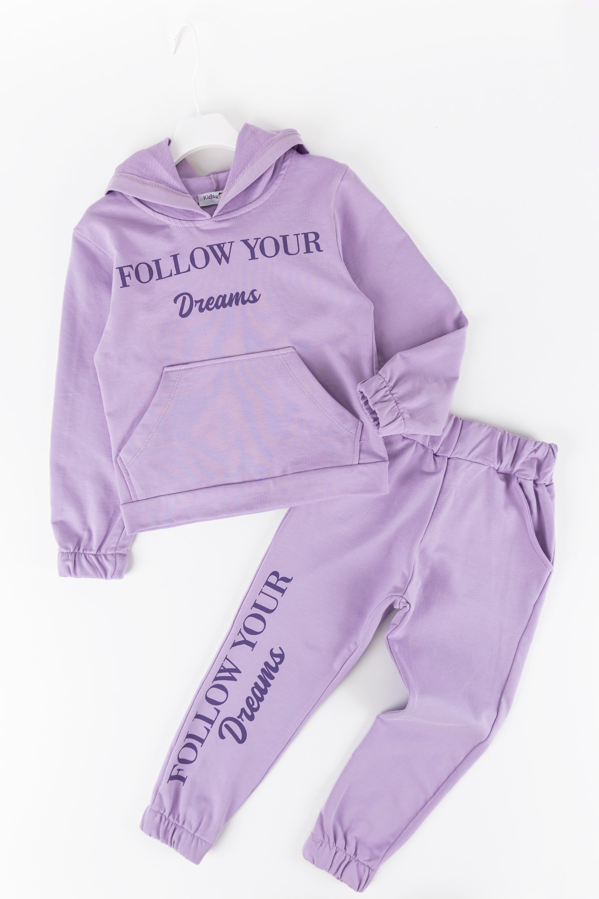 Yazı Baskılı Kapaüşonlu Kız Çocuk Eşofman Takımı