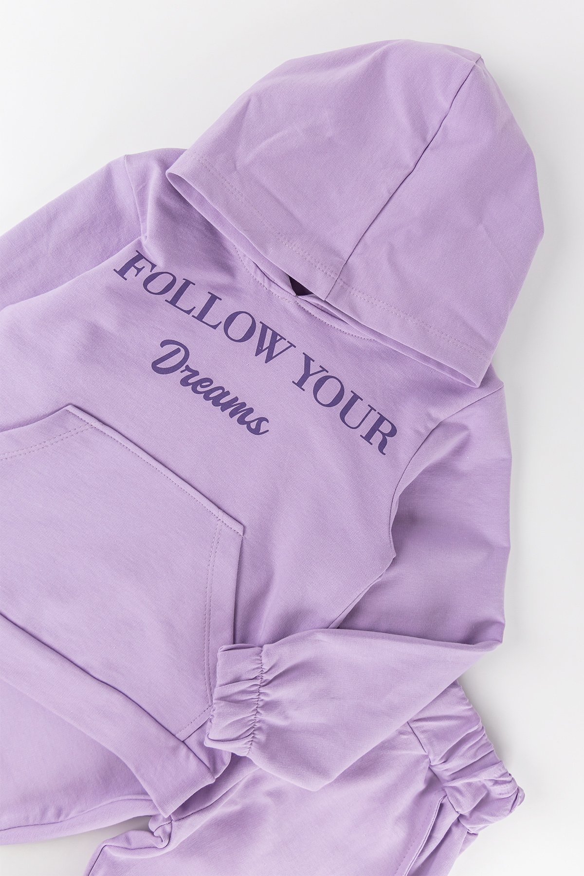 - Kız çocuk eşofman takımı soft dokulu pamuklu iki iplik kumaş ile üretilmiştir.