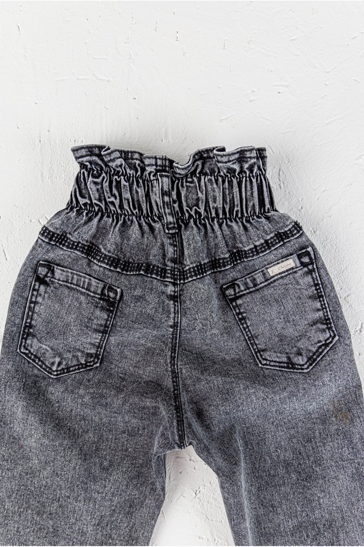 - Denim pantolonun beli lastik büzgülüdür.