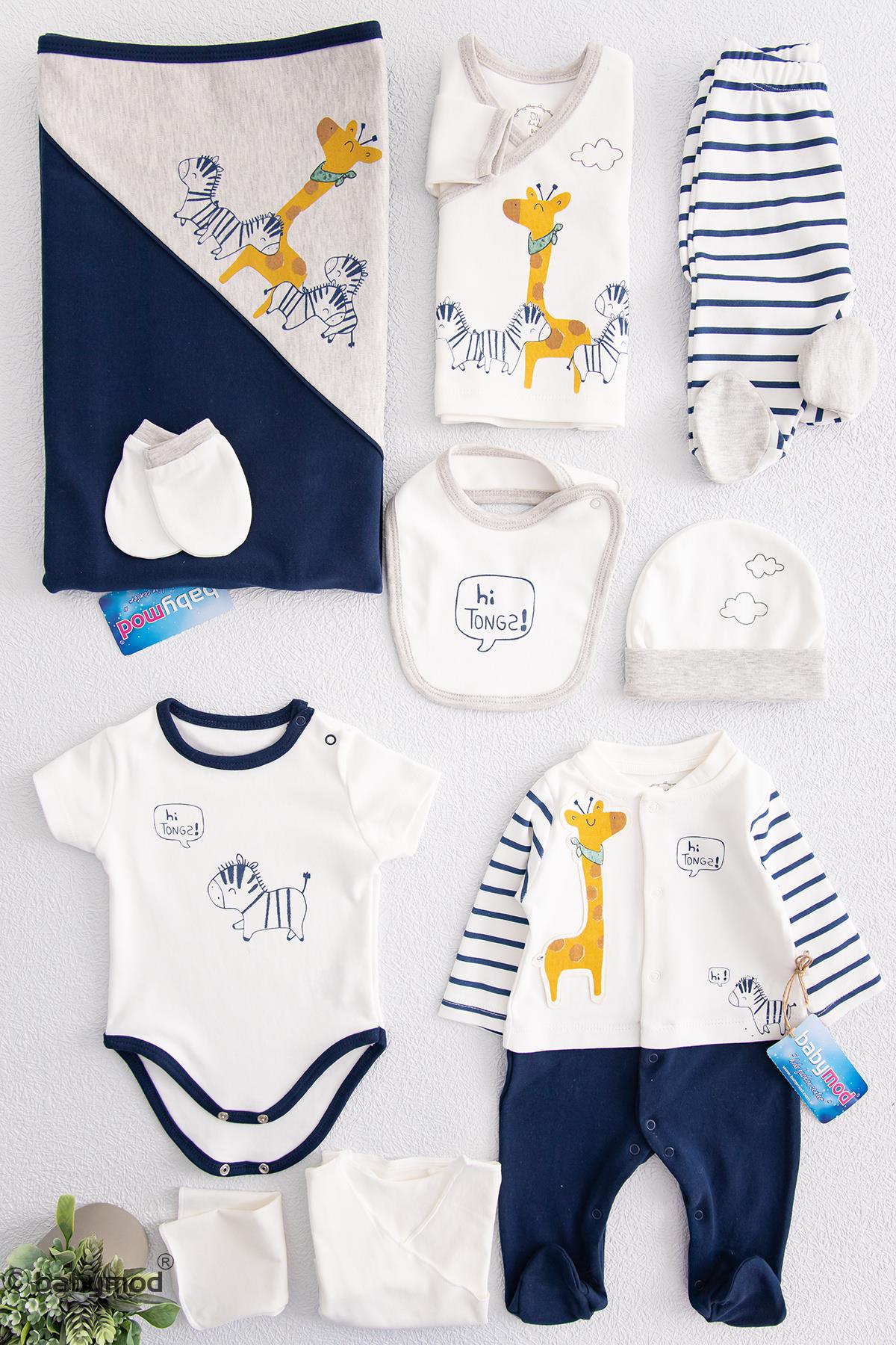 Zürafa Figürlü 10'lu Tulumlu Erkek Bebek Hastane Çıkışı Zıbın Seti