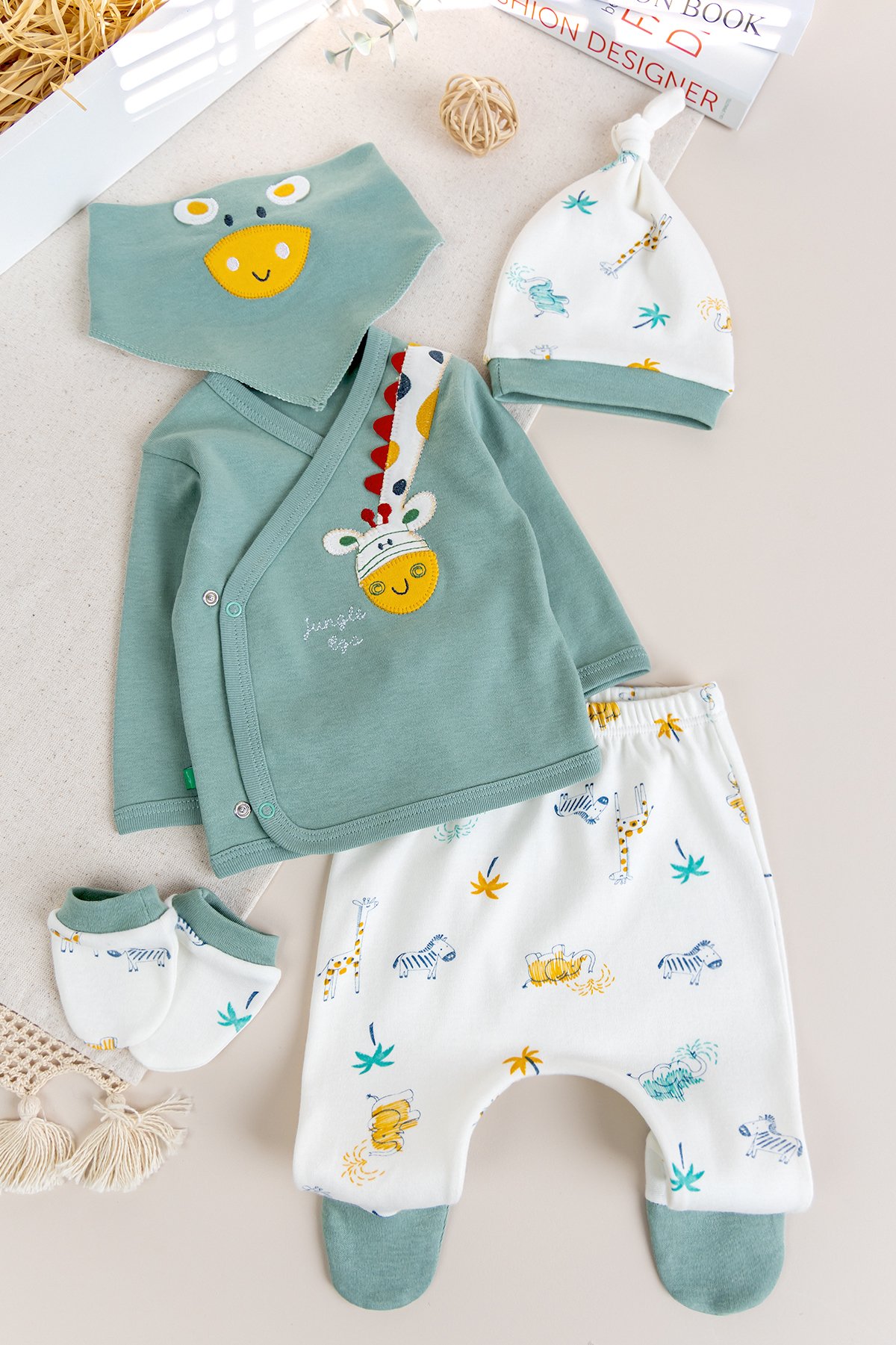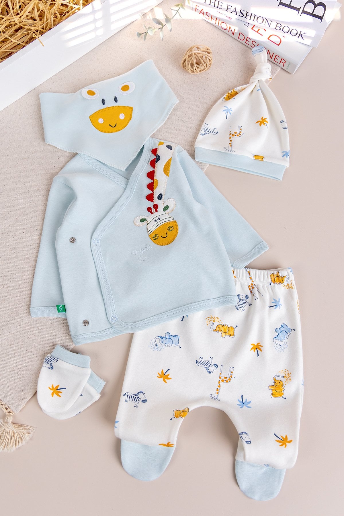 Zürafa Temalı 5 Parça Erkek Bebek Hastane Çıkışı Bebek Takımı